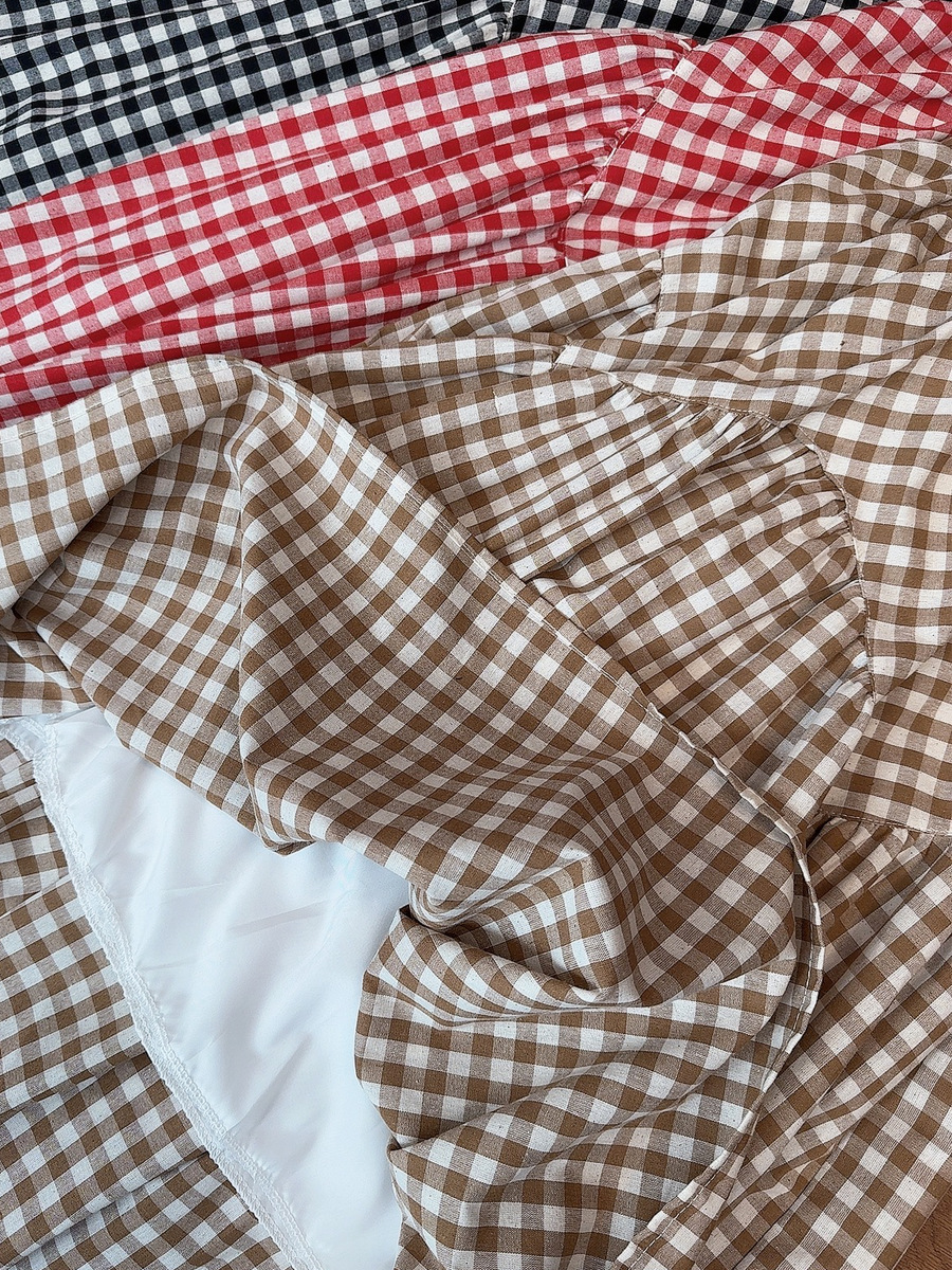 Art Retro Plaid High Waist Slimming A Line Skirt Patchwork Big Hem Umbrella Skirt