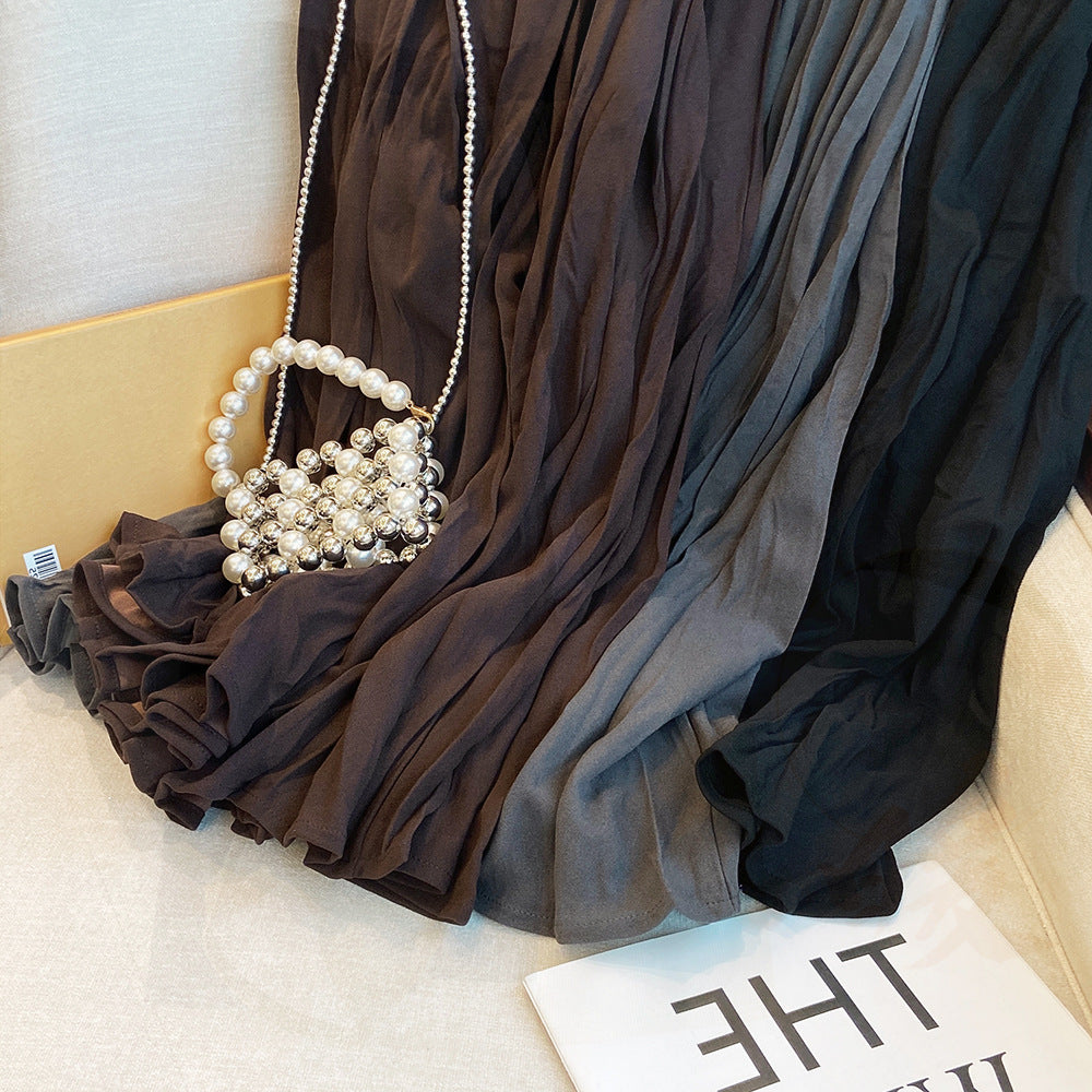 Artistic Retro Skirt Women Texture Pleated Skirt A line Skirt Mid Length Base Skirt