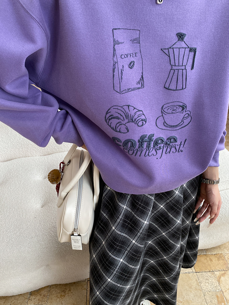 Atmosphere Fun Coffee Bread Printing round Neck Loose Pullover Sweater