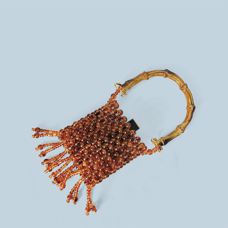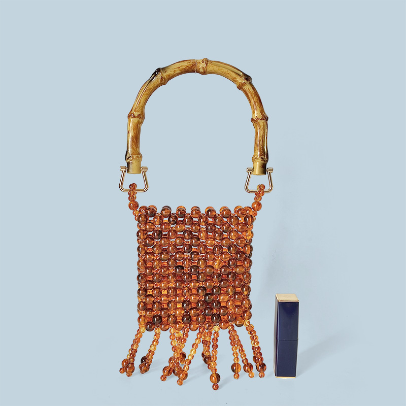 Autumn 24 Faux Bamboo Hand Woven Beads Pearl Tassel Cocktail Amber Handbag
