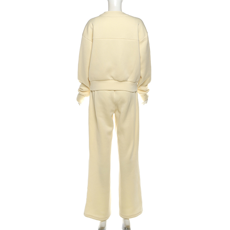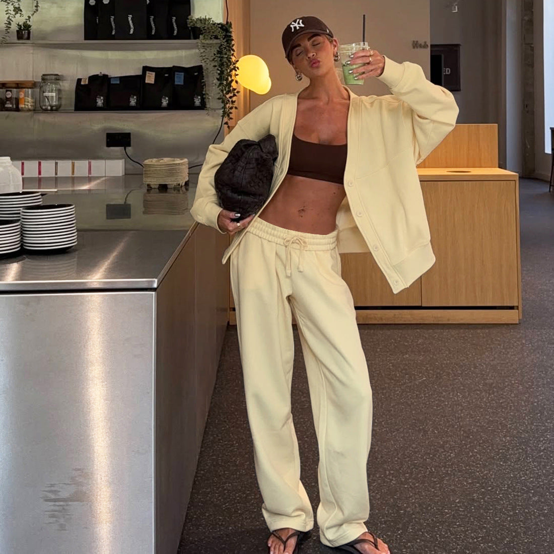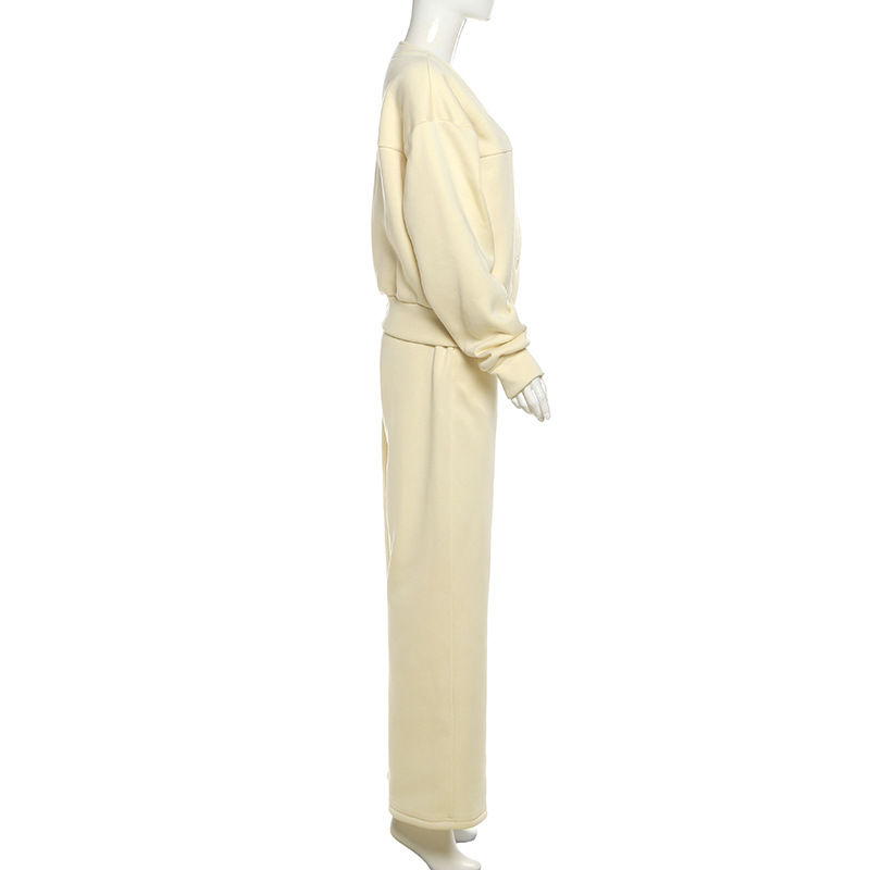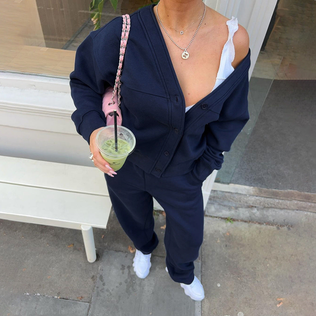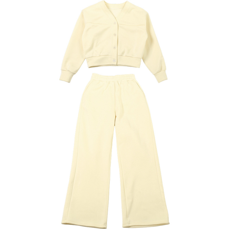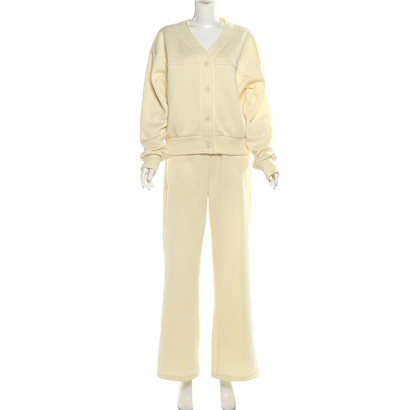 Autumn Button Cardigan Coat High Waist Solid Color Loose Trousers Idle Set