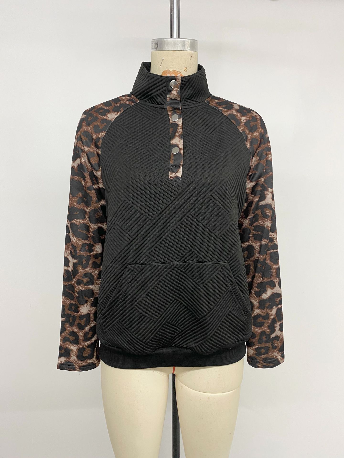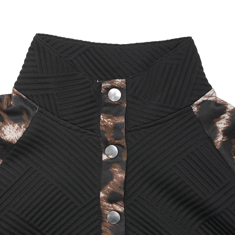 Autumn Casual Cool Street Half Turtleneck Cardigan Stitching Leopard Print Sweater Women