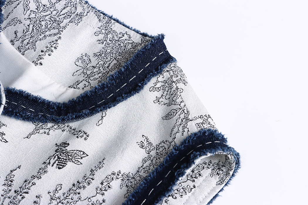 Autumn Chinese Jacquard Embroidery Stitching Denim Covered round Neck Vest