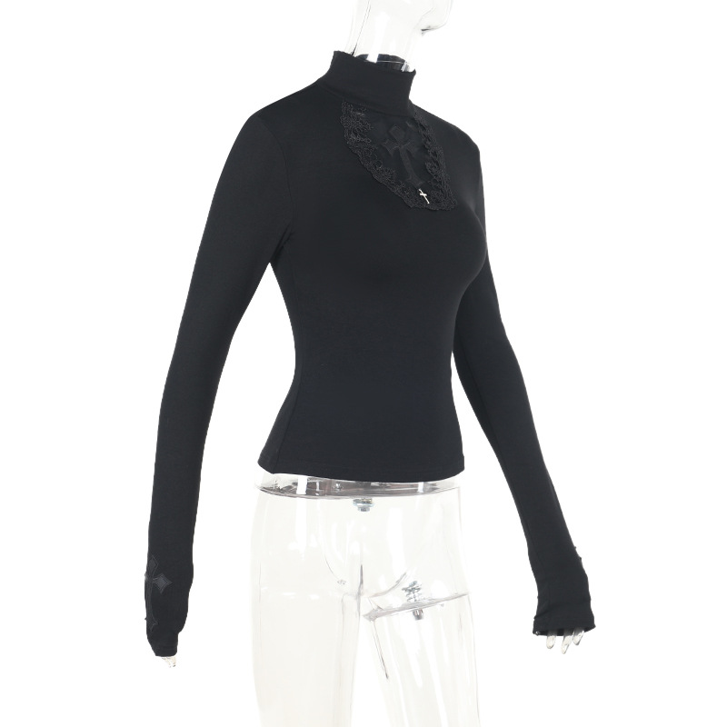 Autumn Dark Sexy Slim Hollow Out Cutout Cross Long Sleeve Top