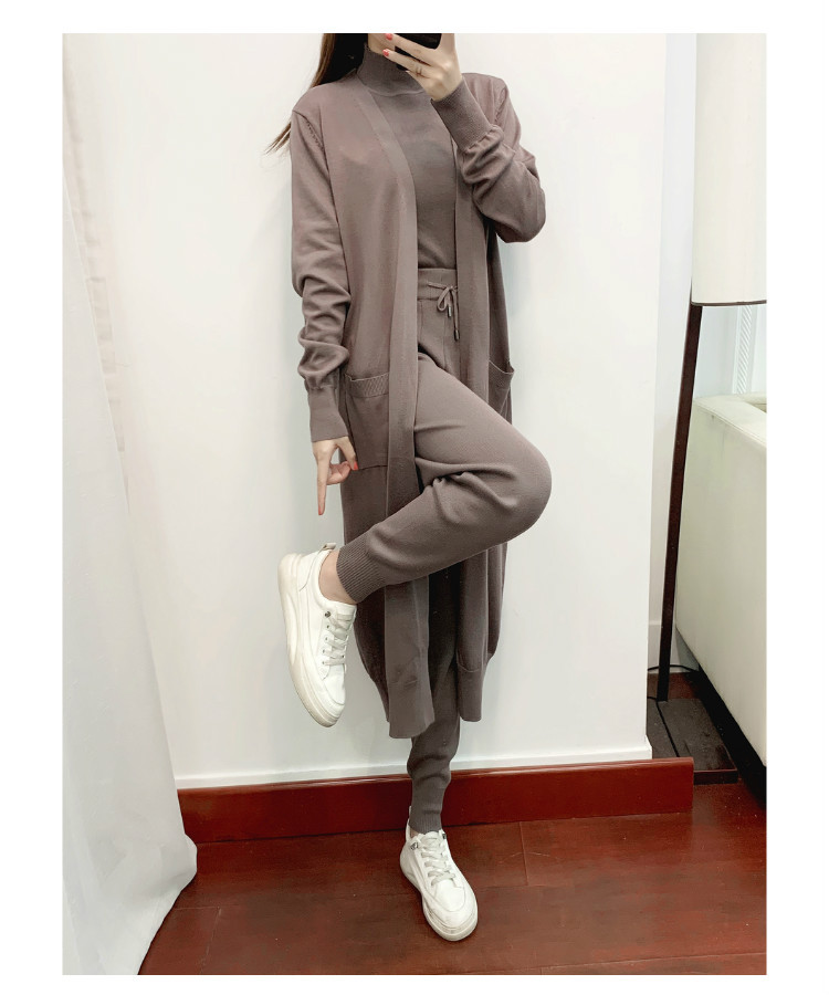 Autumn Fashionable Graceful sets Women Clothing Western Youthful Looking Casual Knitted Cardigan Vest Pants Three Piece Set