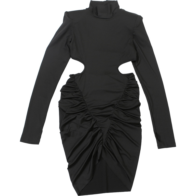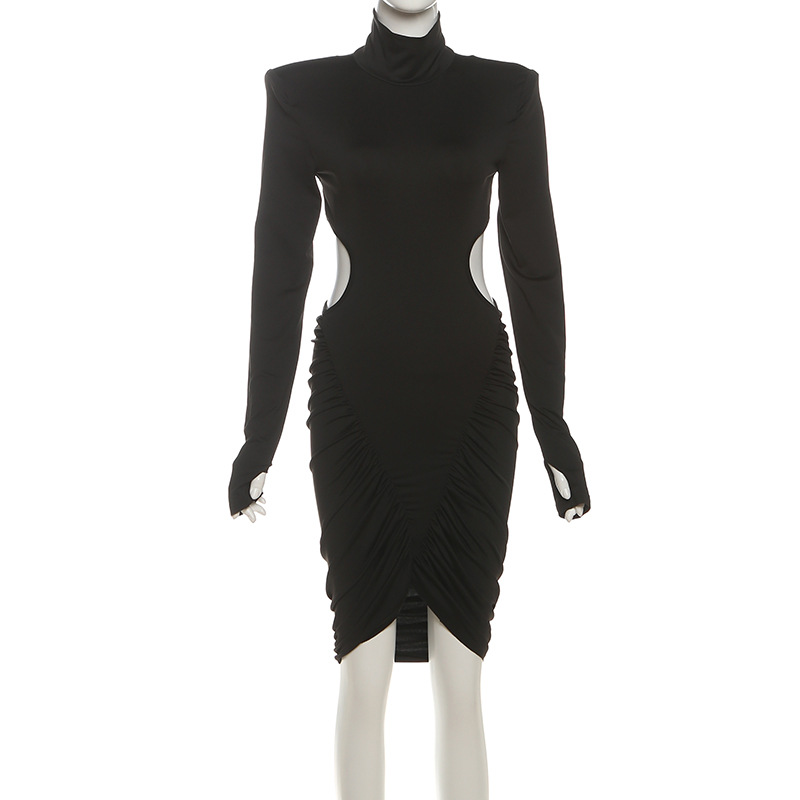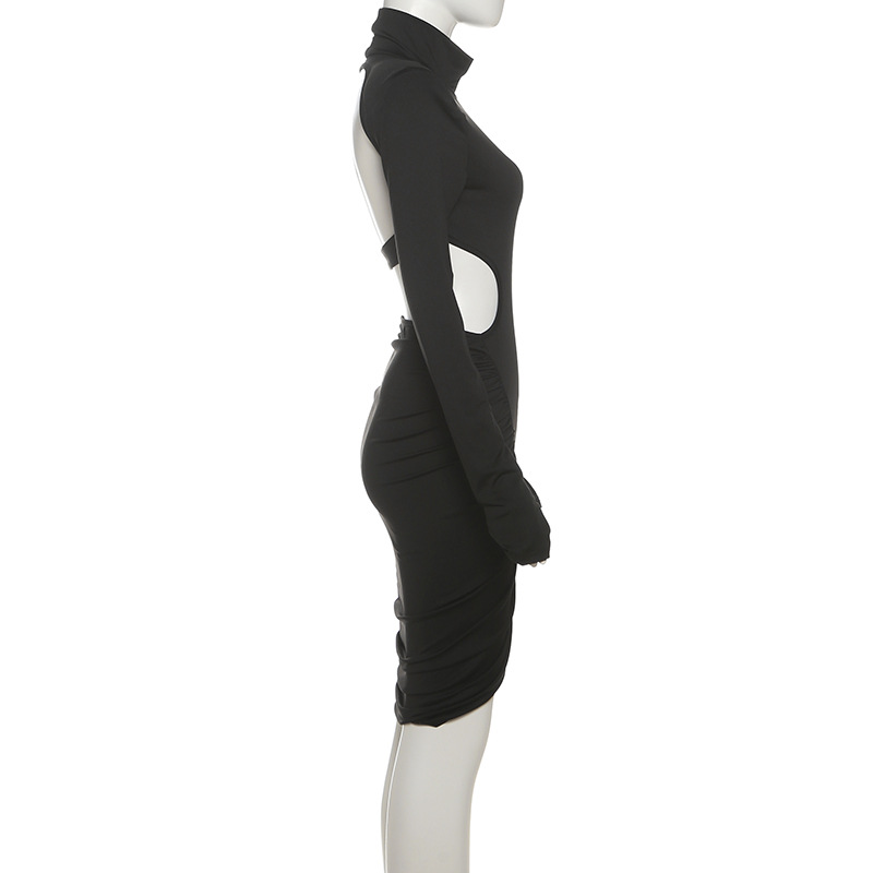 Autumn Sexy Turtleneck Backless Ruffle Hip Short Dress Long Sleeve Dress