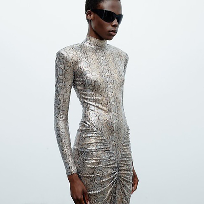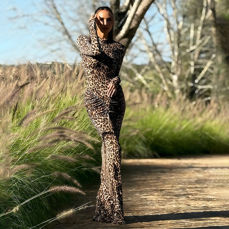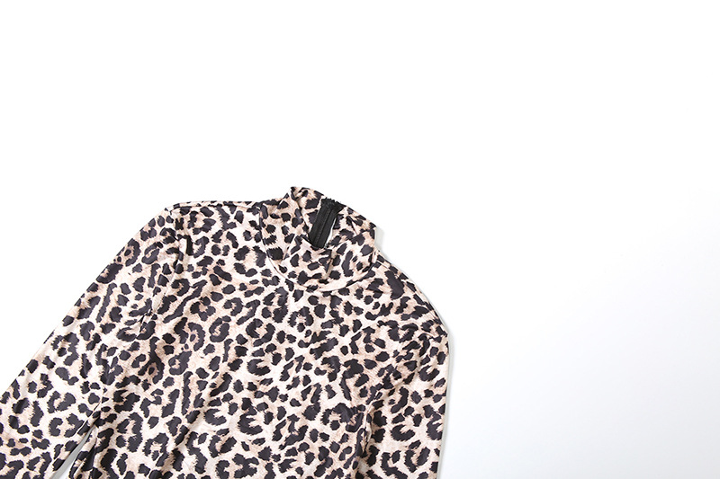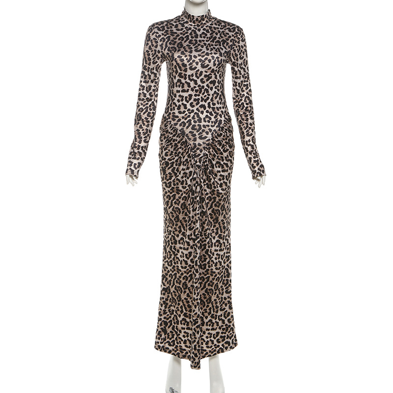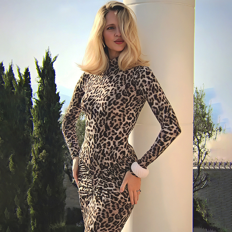 Autumn Slim round Neck Leopard Print Dress Long Sleeve Printed Dress Women Clothing
