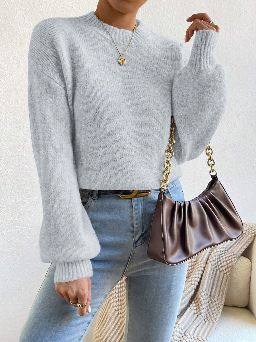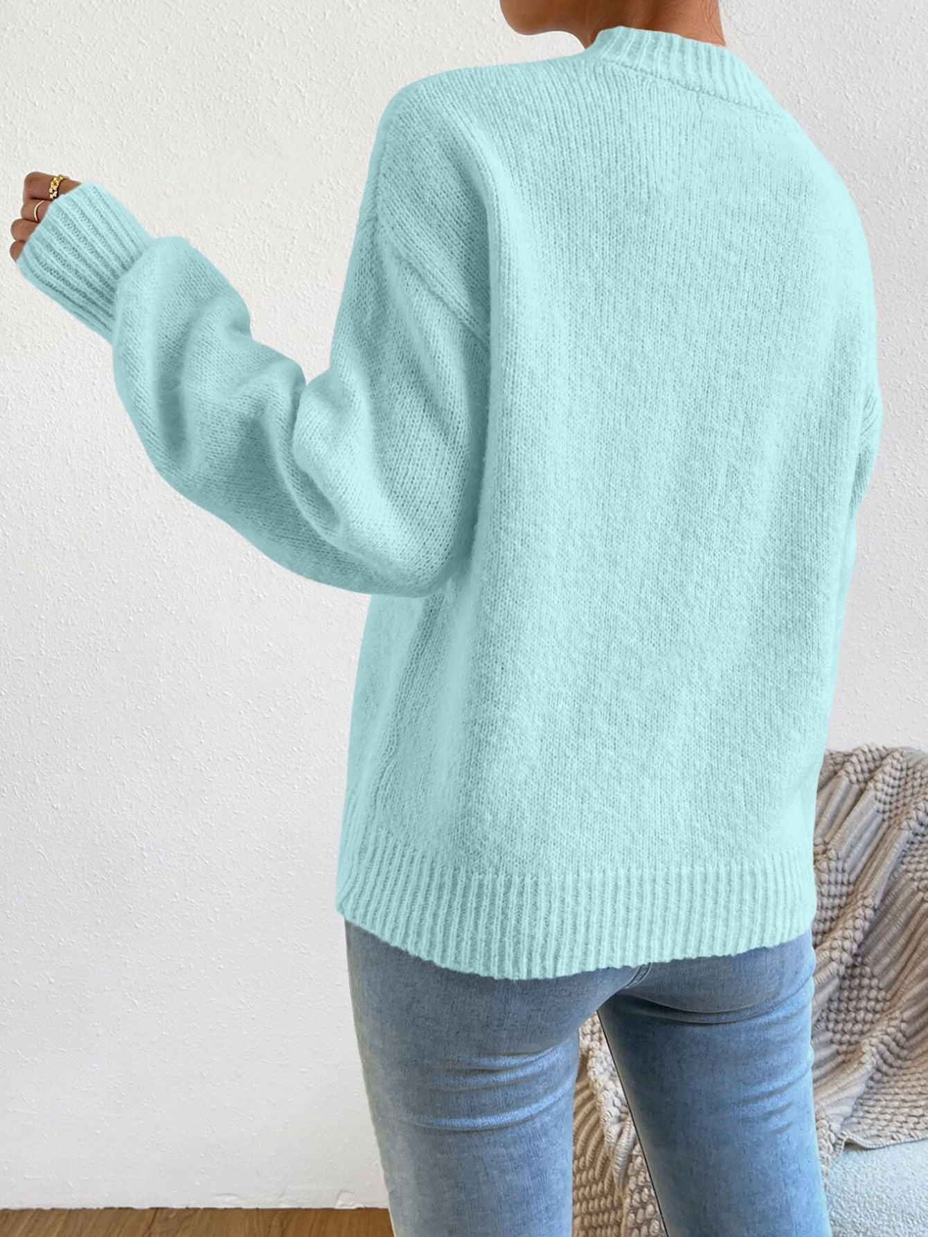 Autumn Winter Autumn Winter Comfortable Casual Loose round Neck Linking Long Sleeve Solid Color Sweater for Women