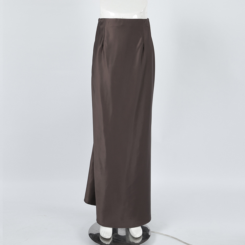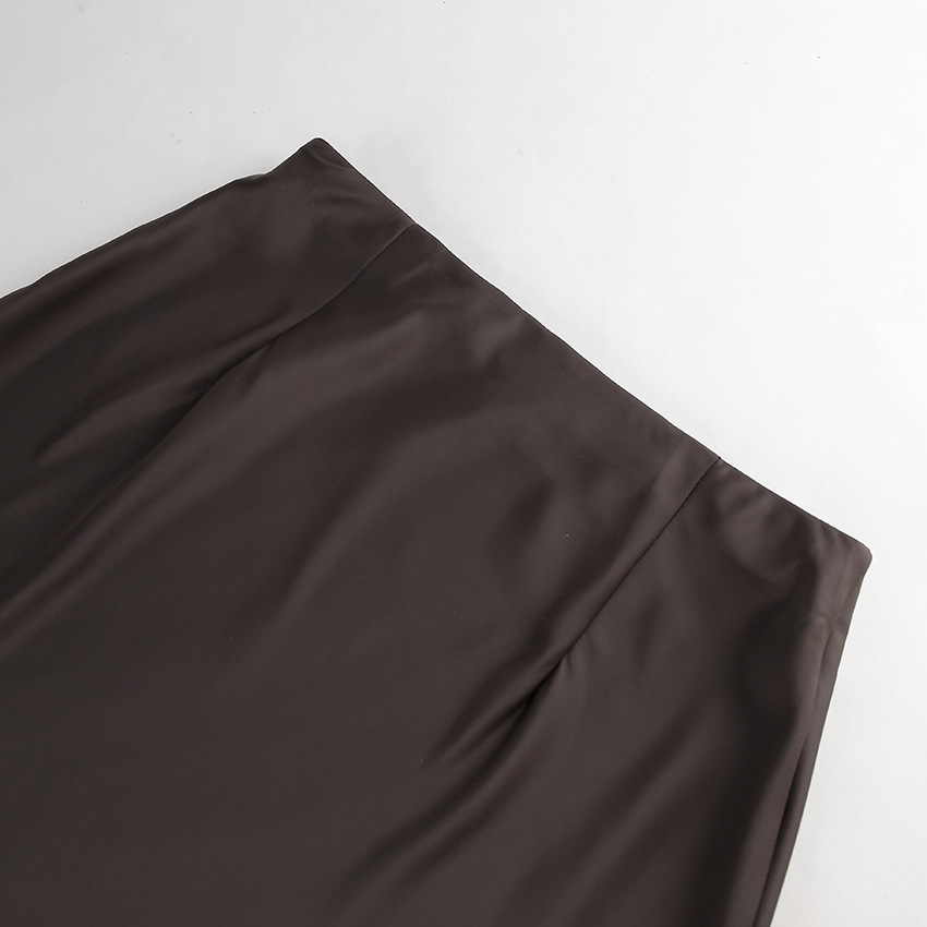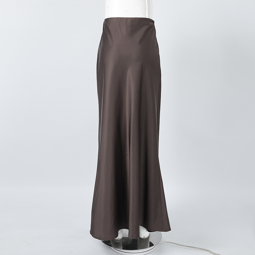 Autumn Winter Classic Brown Retro Thick Matte Satin High Waist Slim Fit All Matching Slimming Niche Fishtail Skirt for Women