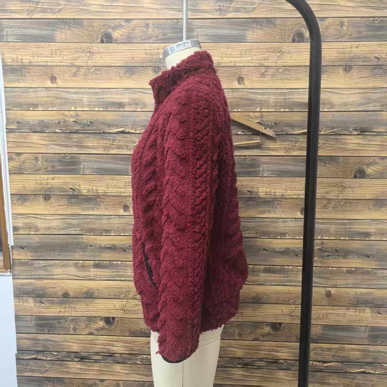 Autumn Winter Collared Classic Jacquard Half Zipper Plush Pocket Short Sweater