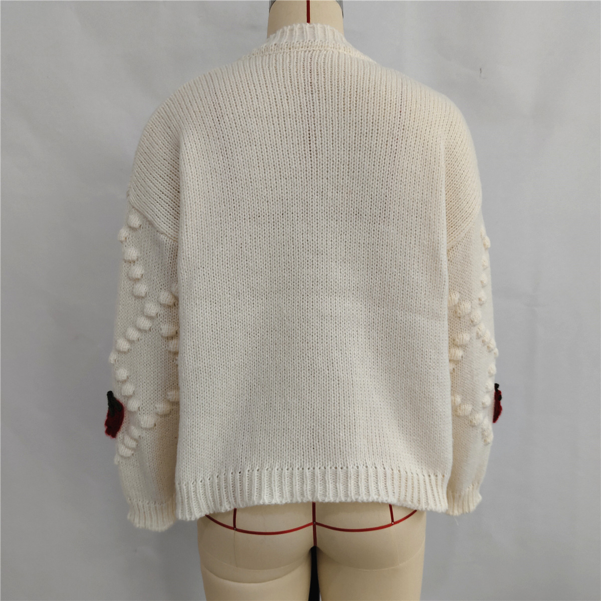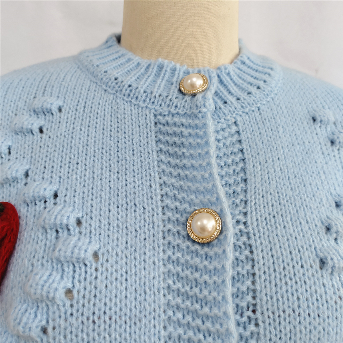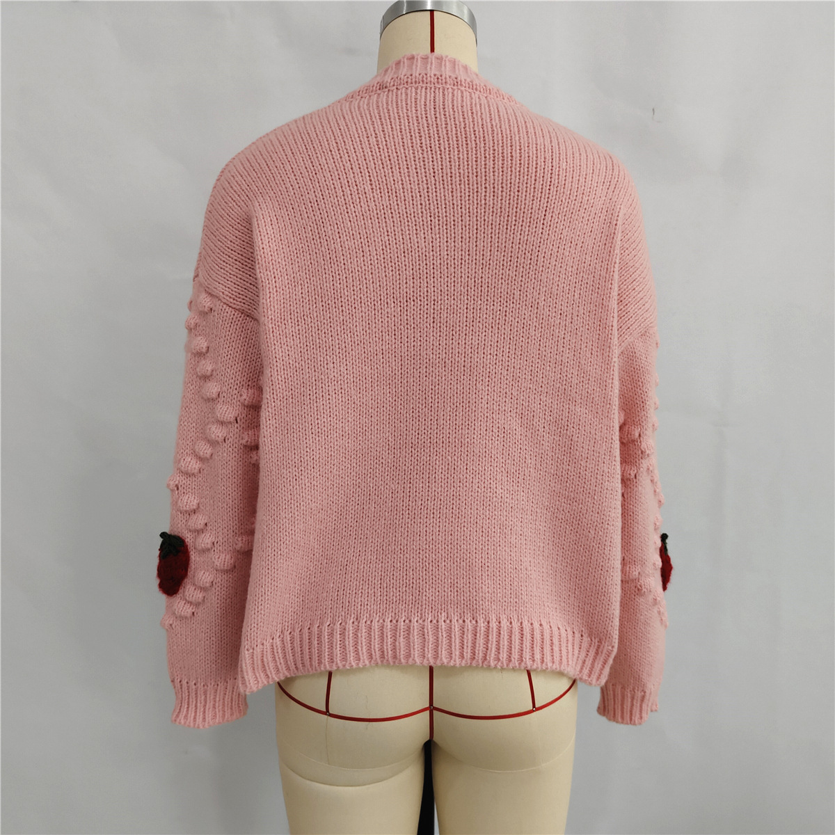 Autumn Winter Crocheted Embroidery Three Dimensional Strawberry Twist Pearl Buckle Knitted Sweater Cardigan Coat