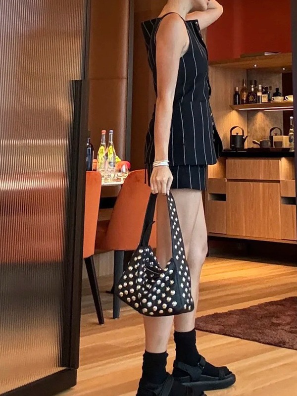 Autumn Winter Fashionable Rivets Shoulder Handbag Underarm Bag Women Bag Heavy Industry Small Bag