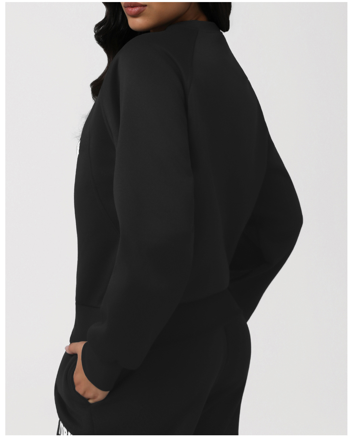 Autumn Winter Fleece Lined Sports Sweater Women Letter Graphic Long Sleeve Casual Warm Top Loose Thin Fitness Clothes