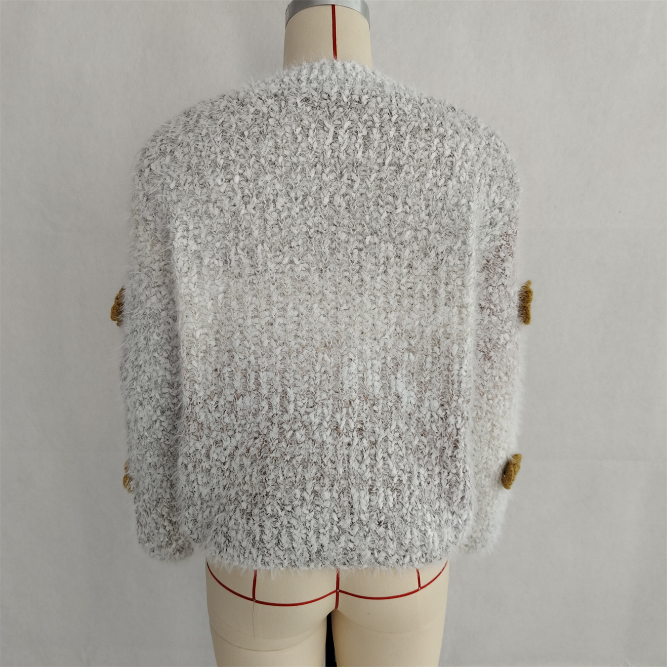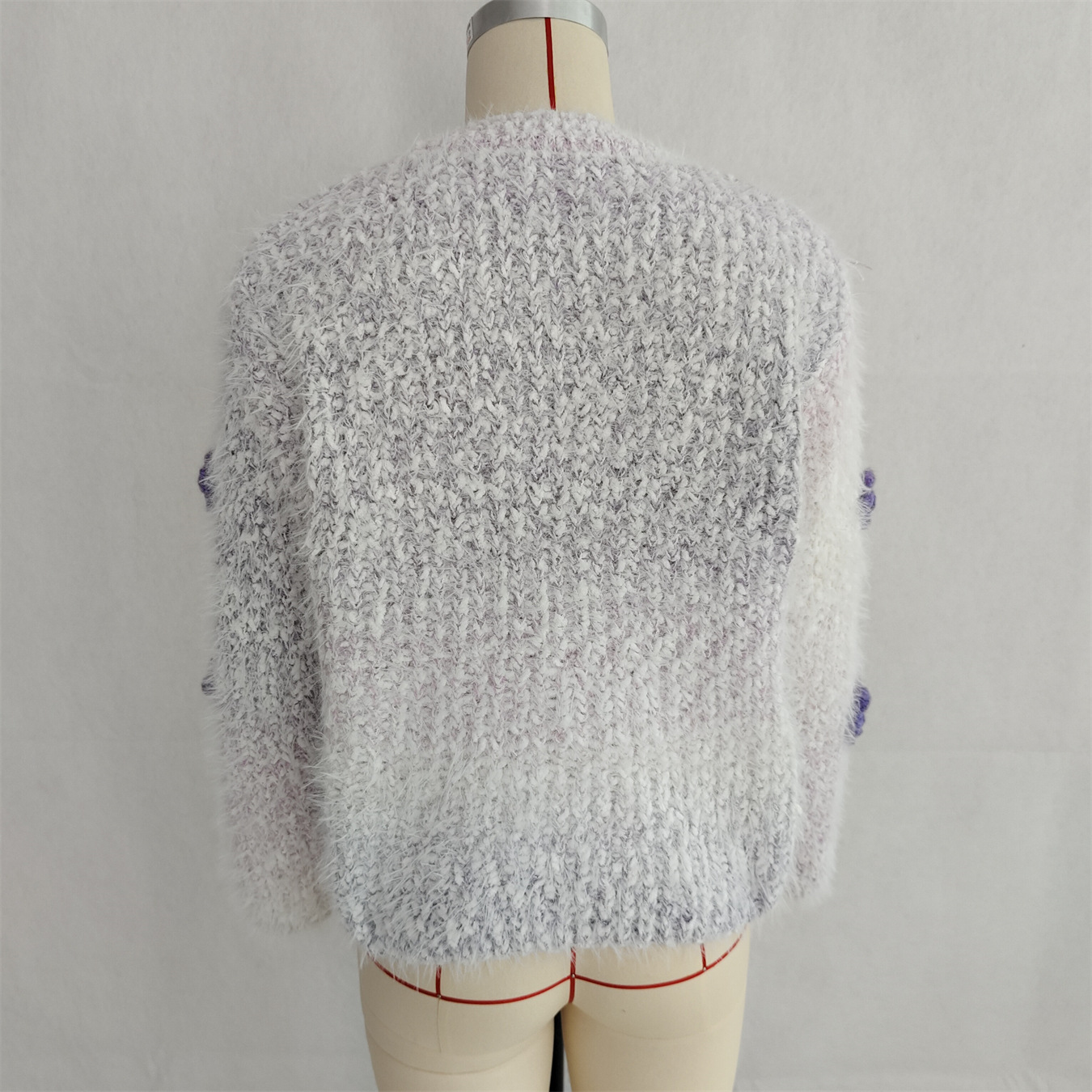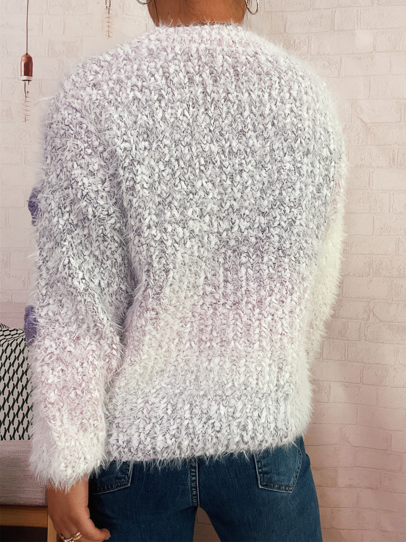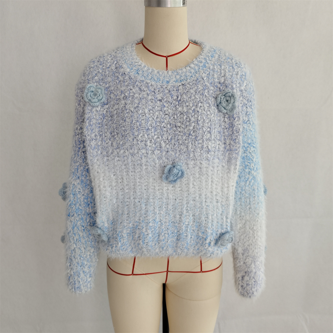Autumn Winter Gradient Color Three Dimensional Cute Floral Pink round Neck Long Sleeve Knitted Pullover Sweater