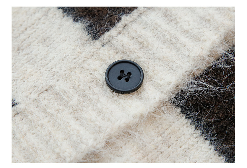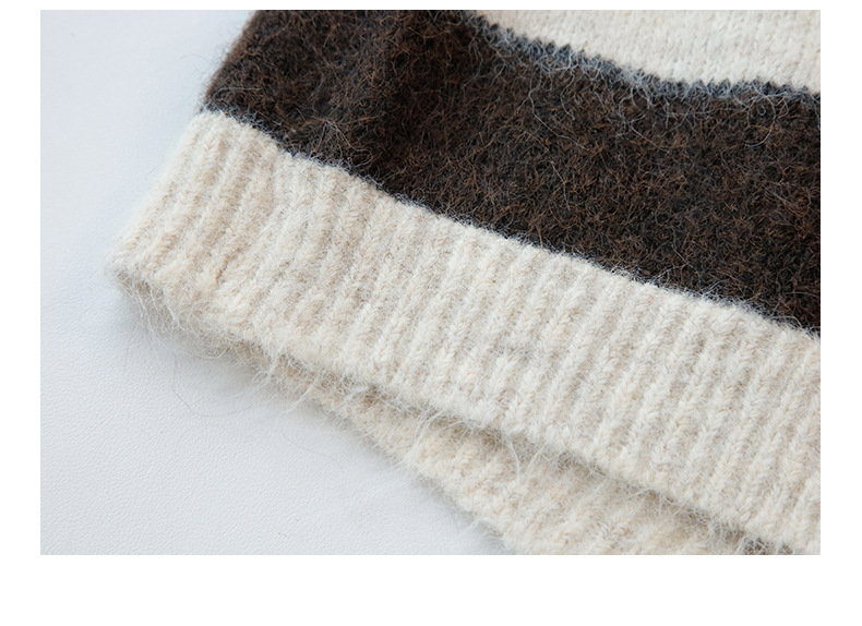 Autumn Winter Lazy Sweater Women Retro Gentle Casual Three Dimensional Striped Contrast Color V neck Long Sleeve Knitted Cardigan