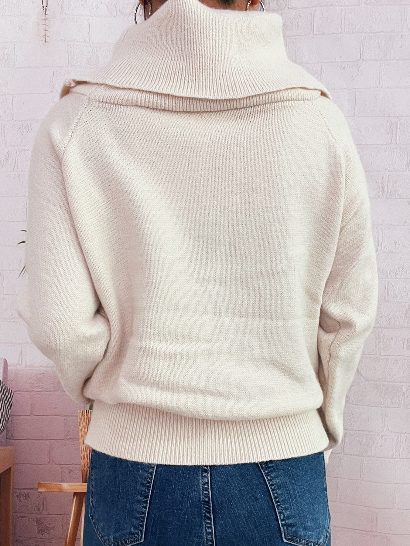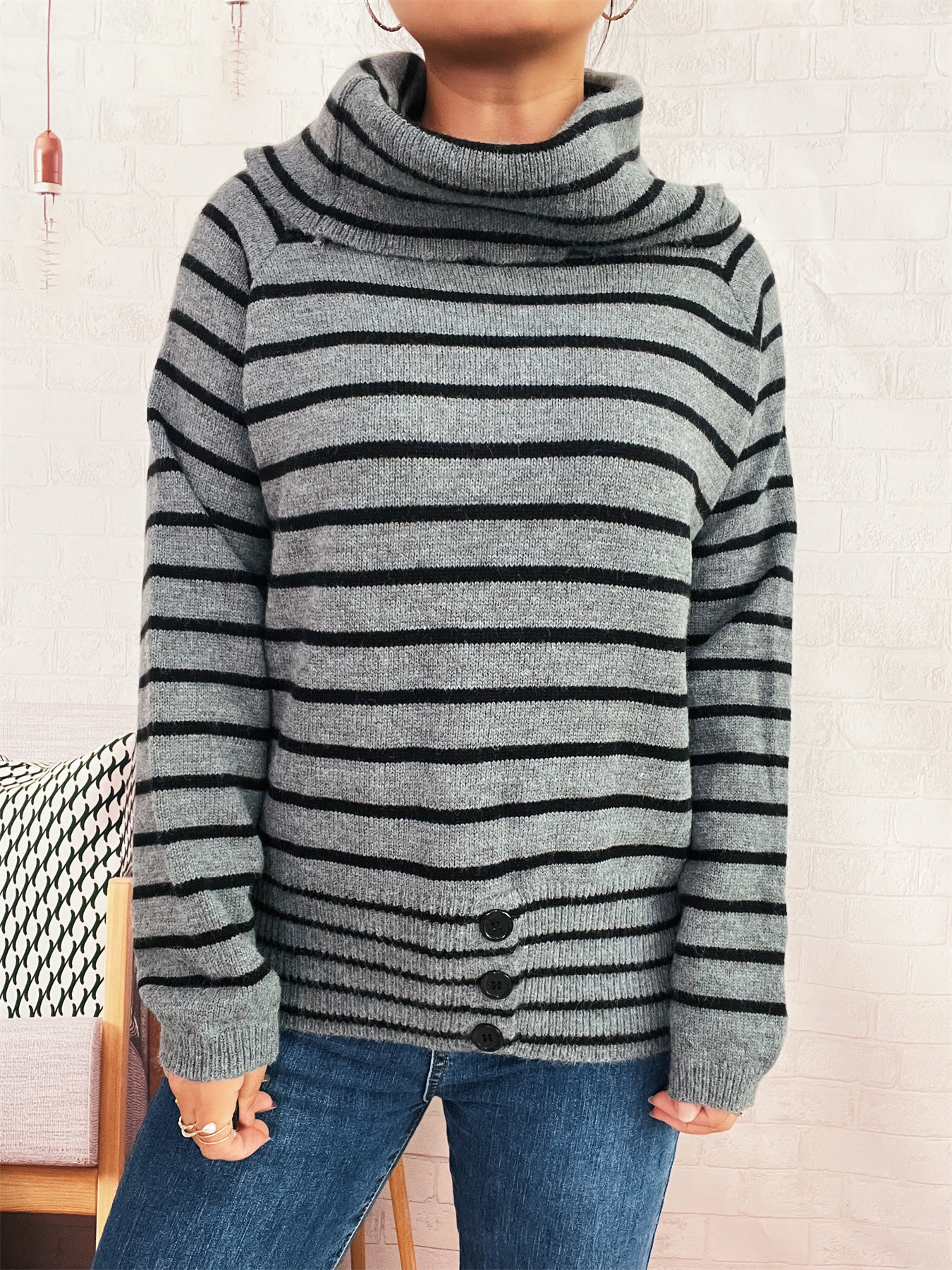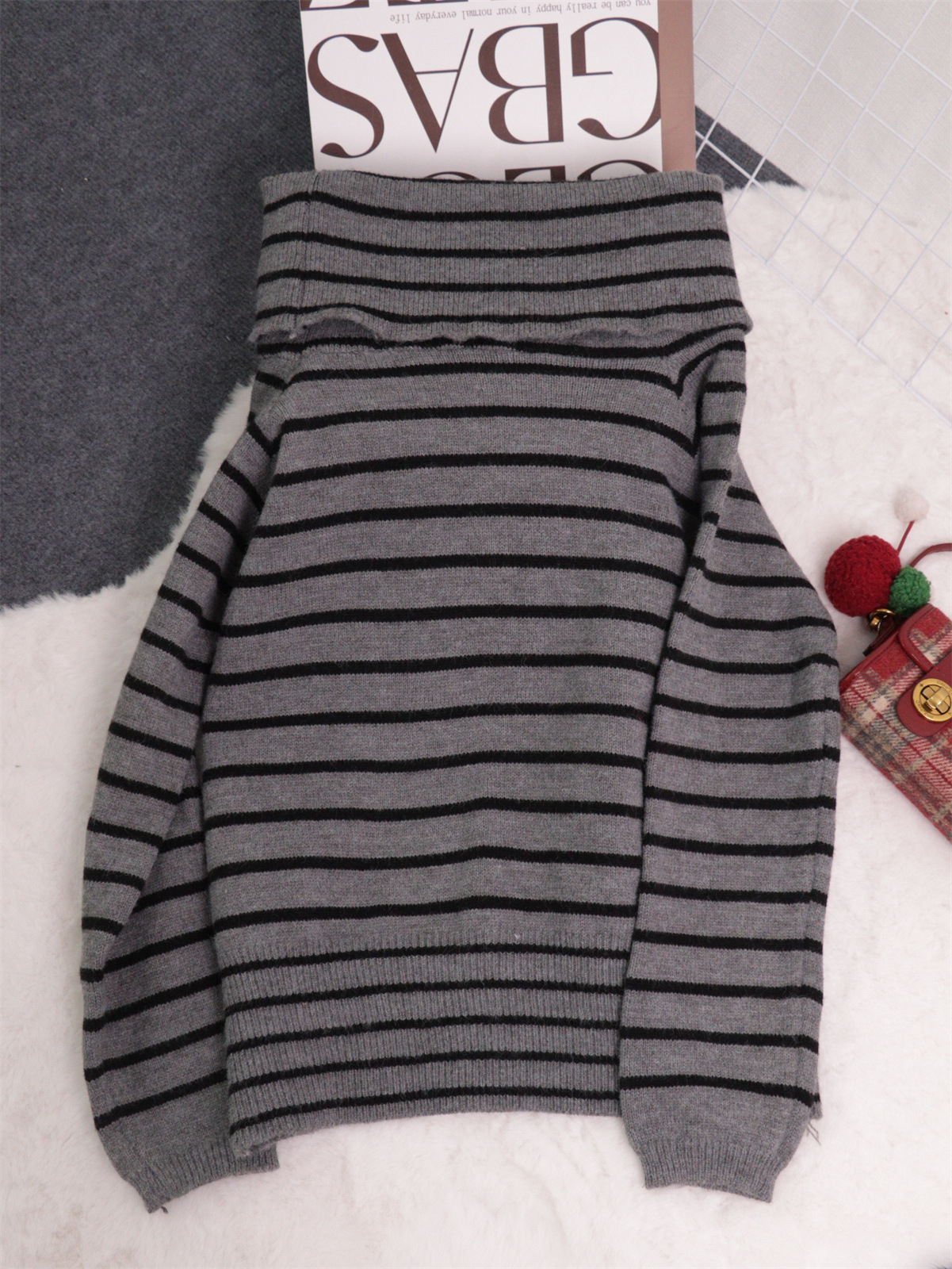 Autumn Winter Retro Office Minimalist Turtleneck Slim Knit Pullover Solid Color Striped Sweater