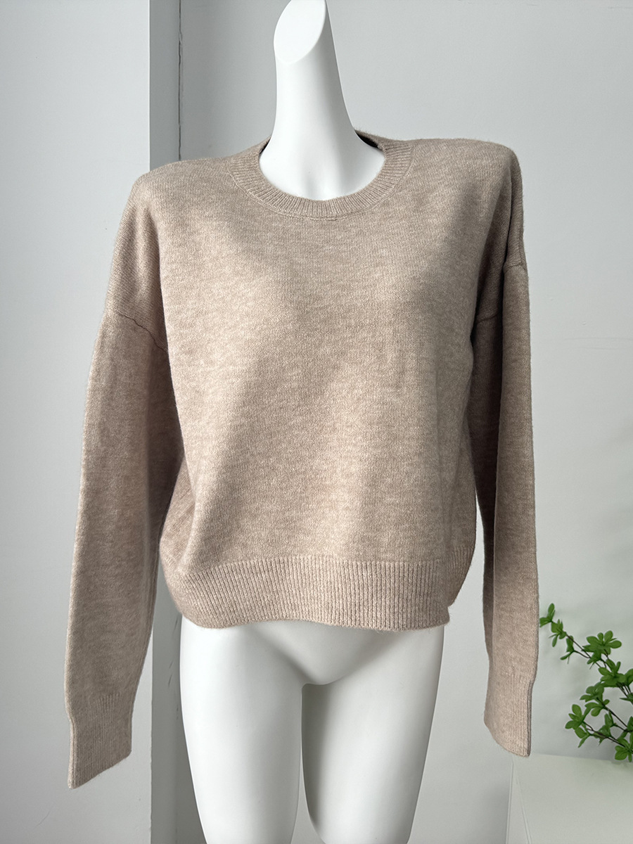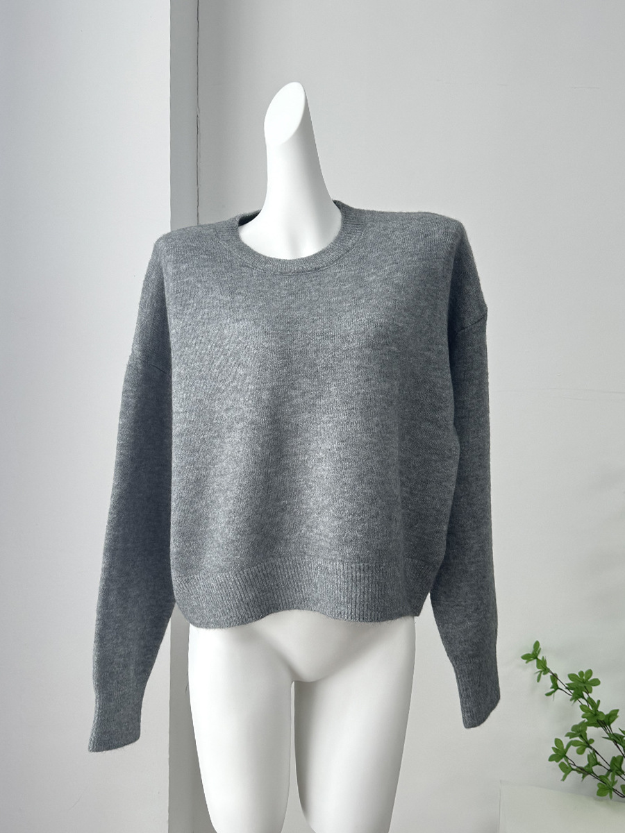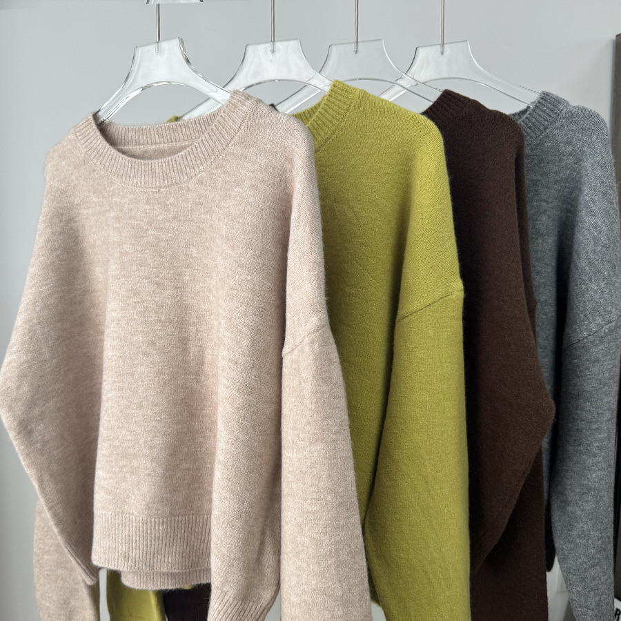 Autumn Winter Russian Thickened Short round Neck Solid Color Sweater All Matching Basic Women Clothing