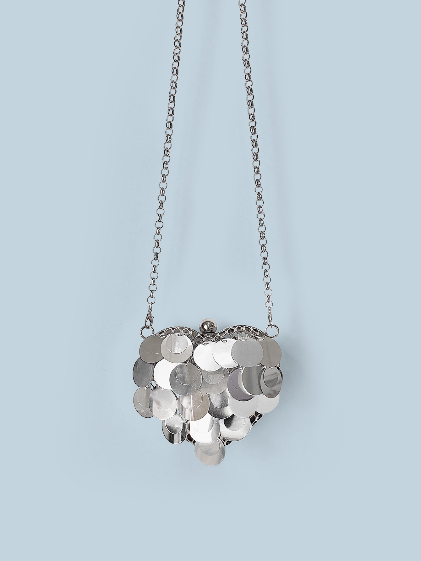 Autumn Winter Special Interest Design Light Absorbing Face Atmosphere Cross Body Sequin Coin Purse Metal Heart Frame Bag