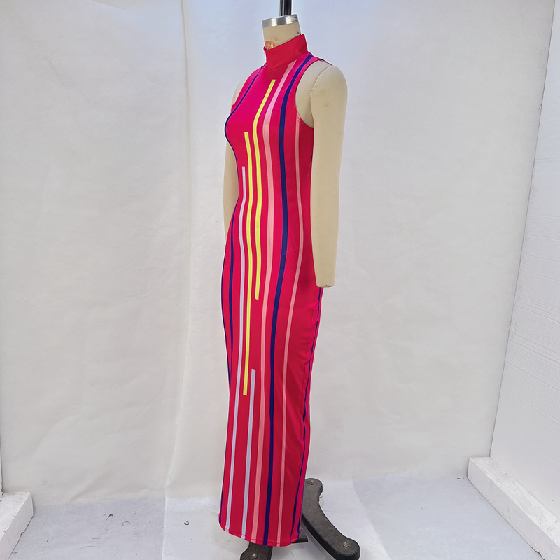 Autumn Winter Sunken Stripe Turtleneck Sleeveless Waist Tight Hip Slim Slimming Dress