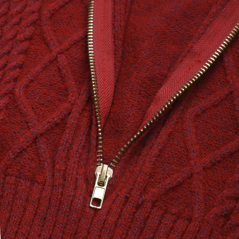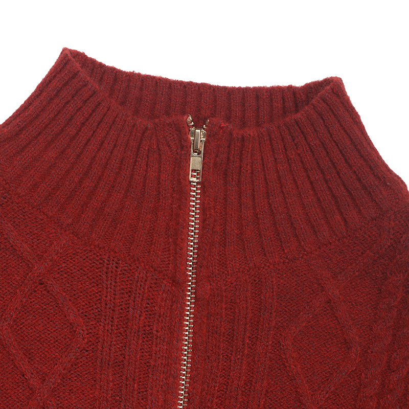 Autumn Winter Women Stand Collar Twisted Red Woolen Dress