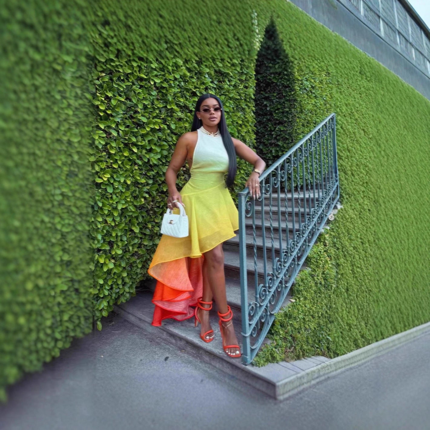 Autumn Women Clothing Sexy Vacation Printing Gradient Sling Dress