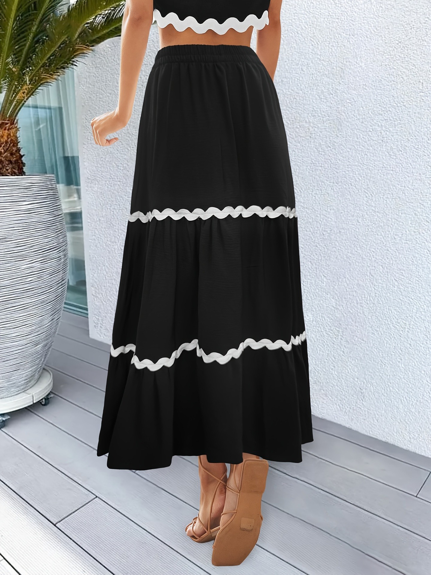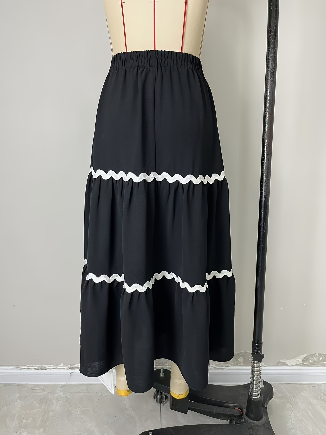 Autumn Women Simple Corrugated Lace Skirt Bohemian Large Swing Skirt