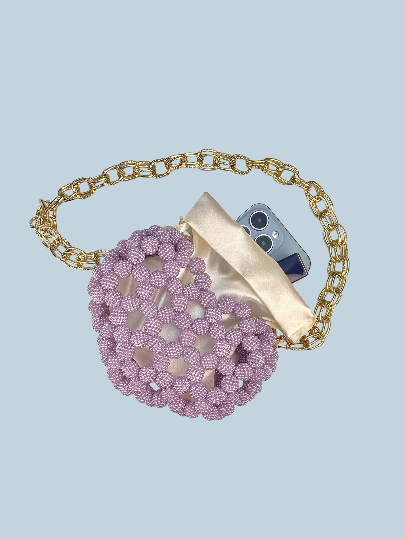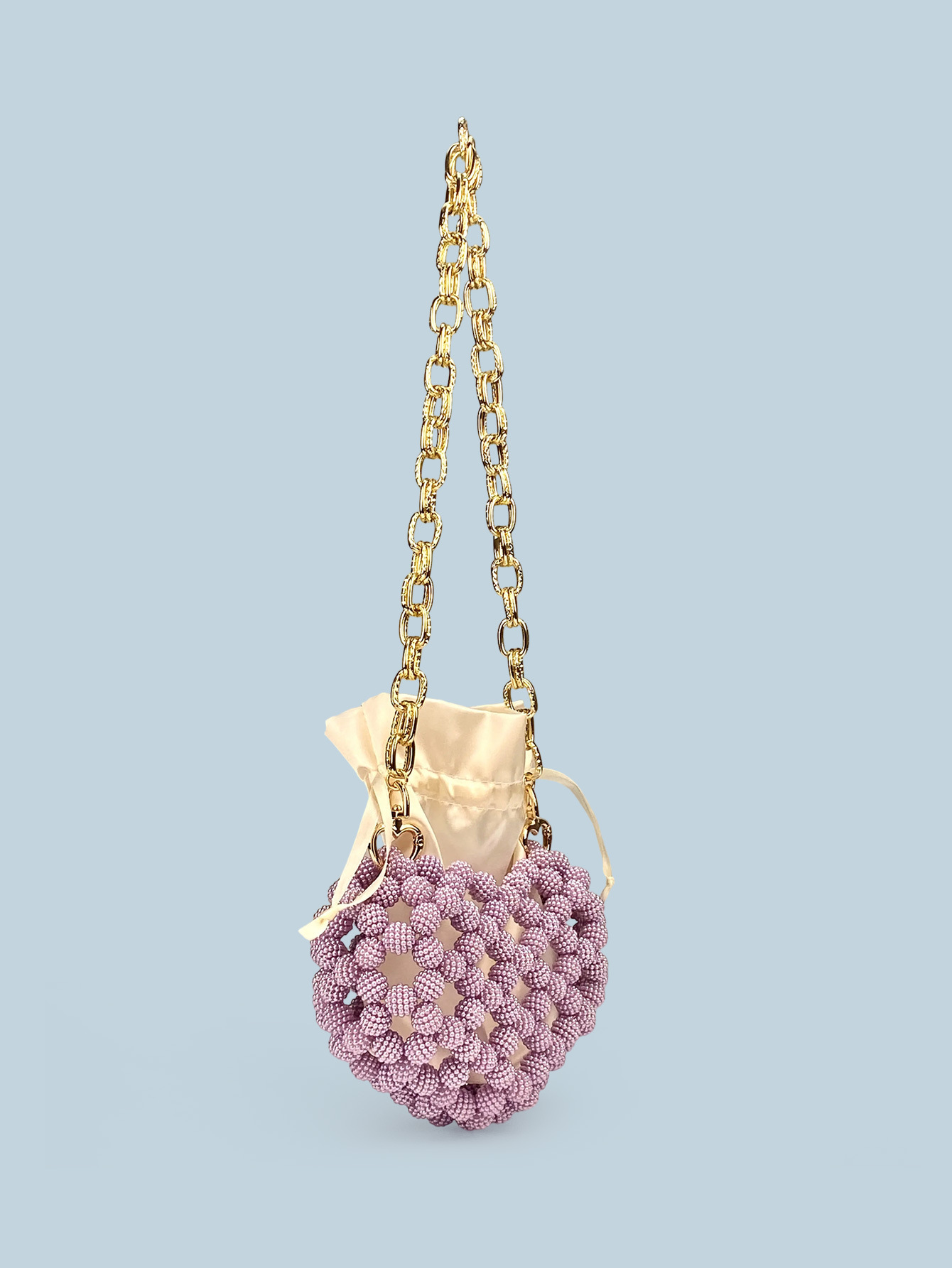 Beaded Girl Hand Bag Mini All Match Waxberry Bead Chain Children Shoulder Heart Bag Handmade Beaded Bag