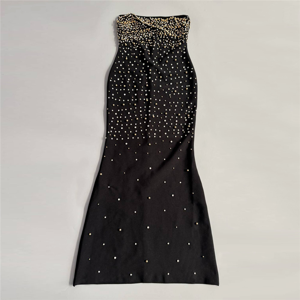 Beads Rhinestones Elegant Shawl Ribbon Tube Top Bandage One Piece Dress Party Dinner Formal Dress