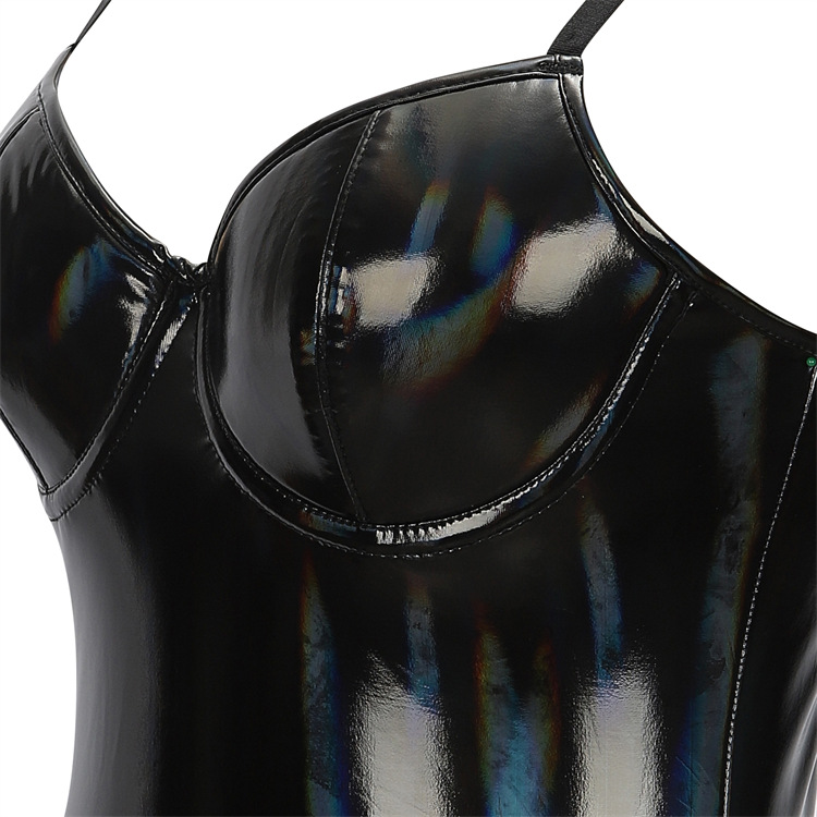 Black Faux Leather Spaghetti Strap Sexy Jumpsuit Can Be Worn outside Tight Waist Slim with Steel Ring Cup Swimsuit