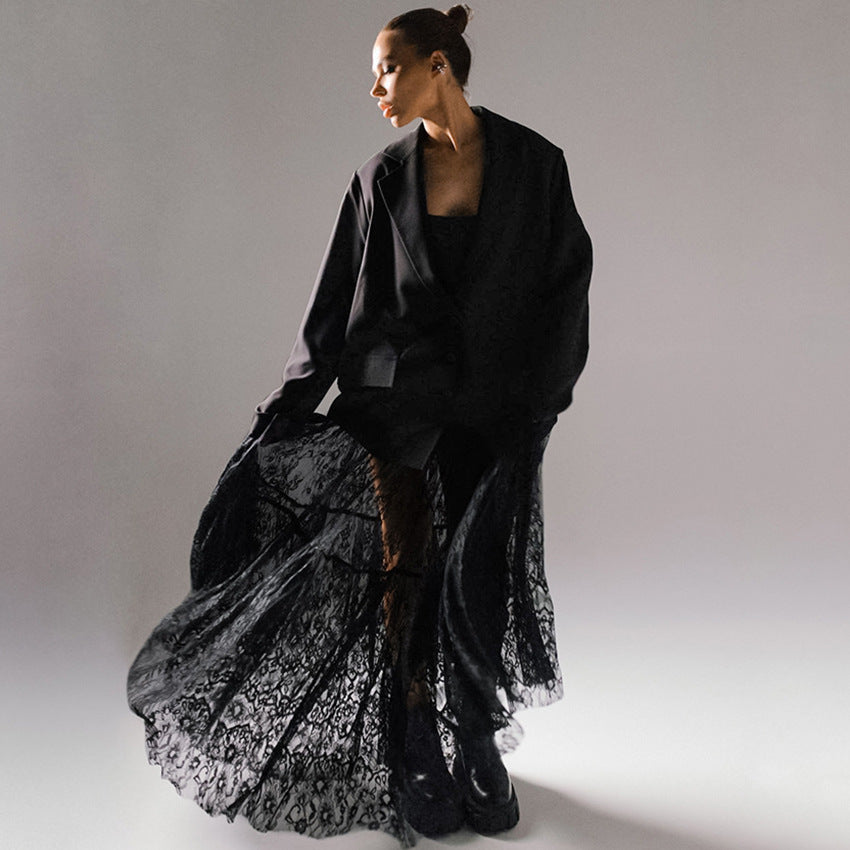 Black Sexy See through Lace High Waist Office Skirt Dress for Women