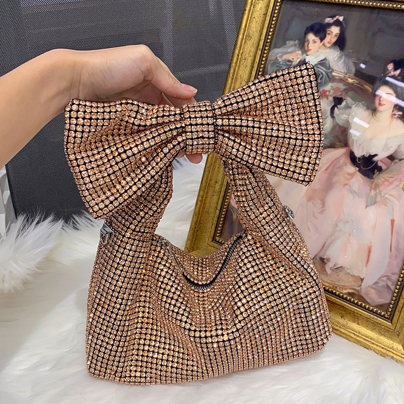 Bow Trend Shiny Diamond Rhinestone Underarm Bag Socialite Elegant Tote Shoulder Bag