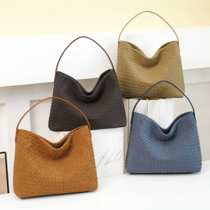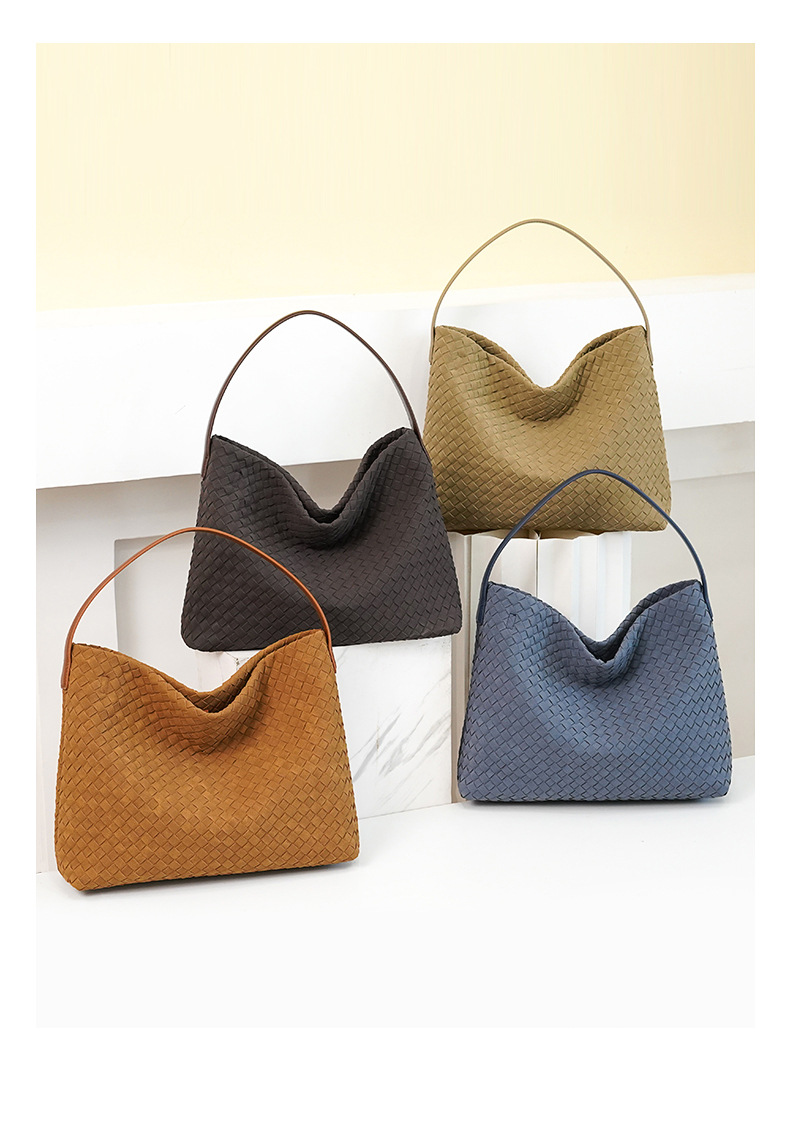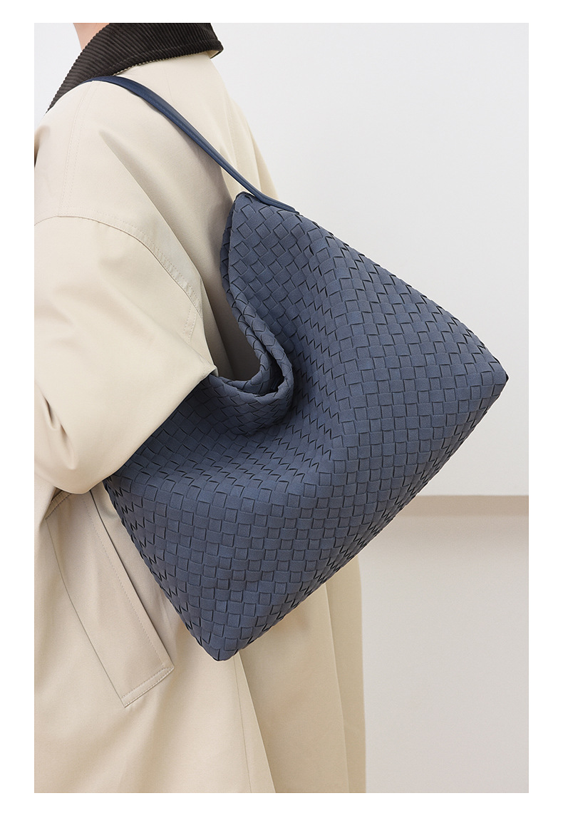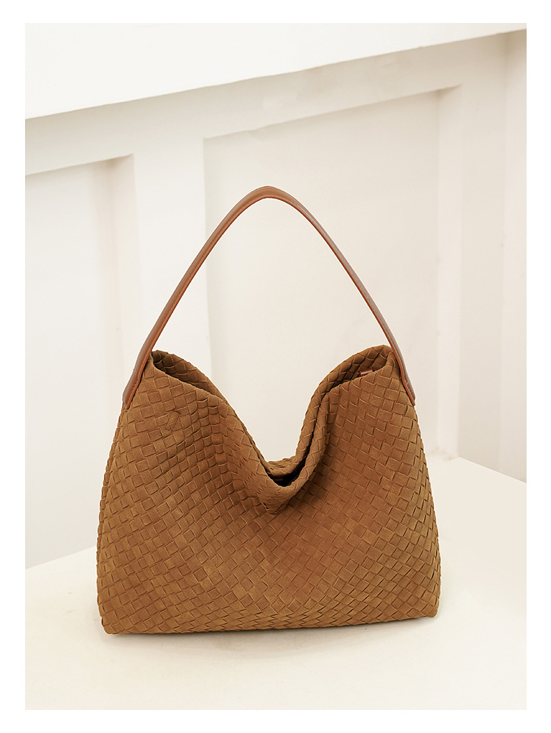 Bucket Bag Autumn Winter Matte Leather Woven Bag Large Capacity High Grade Shoulder Bag Office Messenger Bag