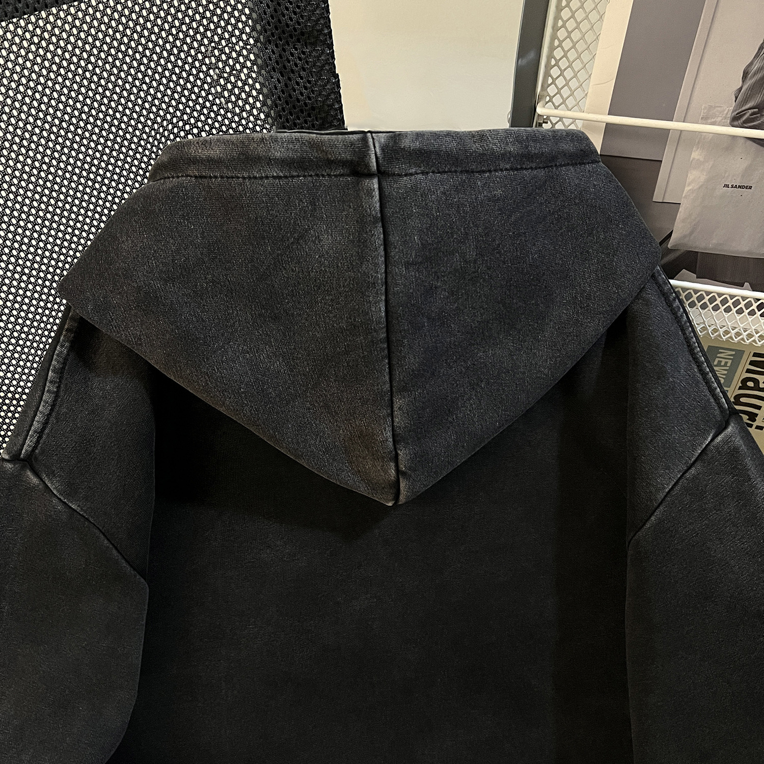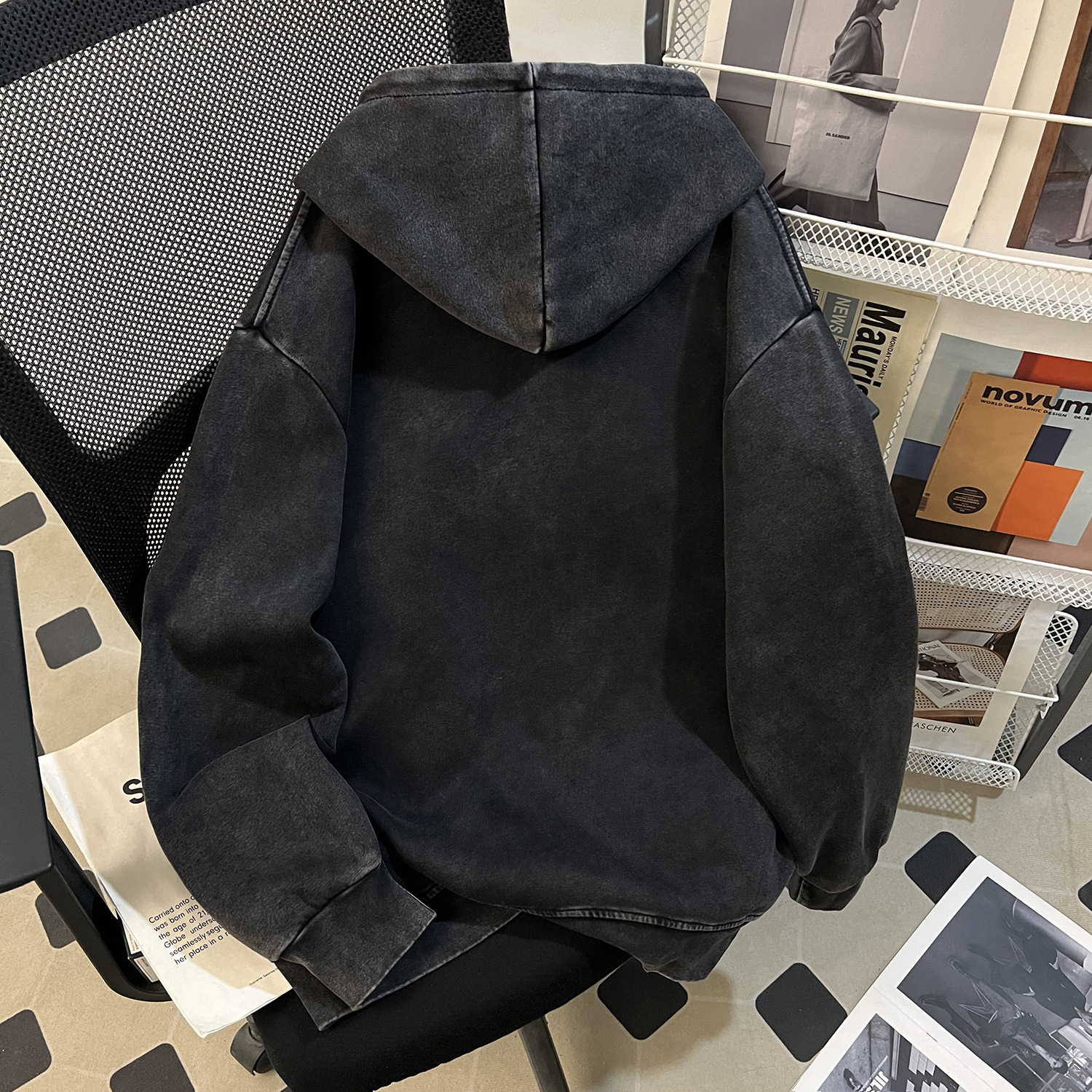 Casual All Match Washed Pure Cotton Chinese Cotton Composite Hooded Sweater Trend Retro Washed Distressed Batik Top