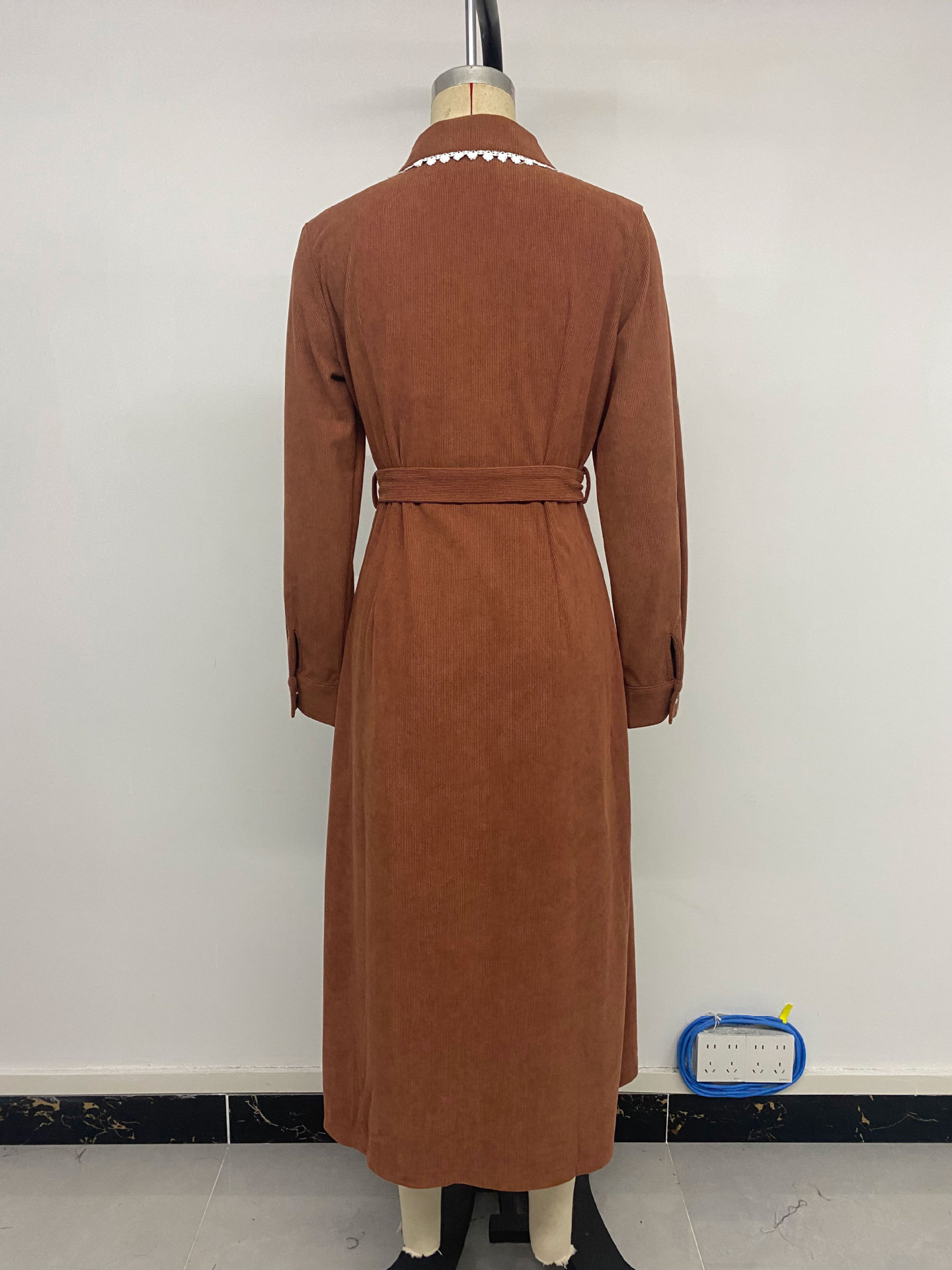 Casual Elegant Retro Lace Collared Shirt Corduroy Dress