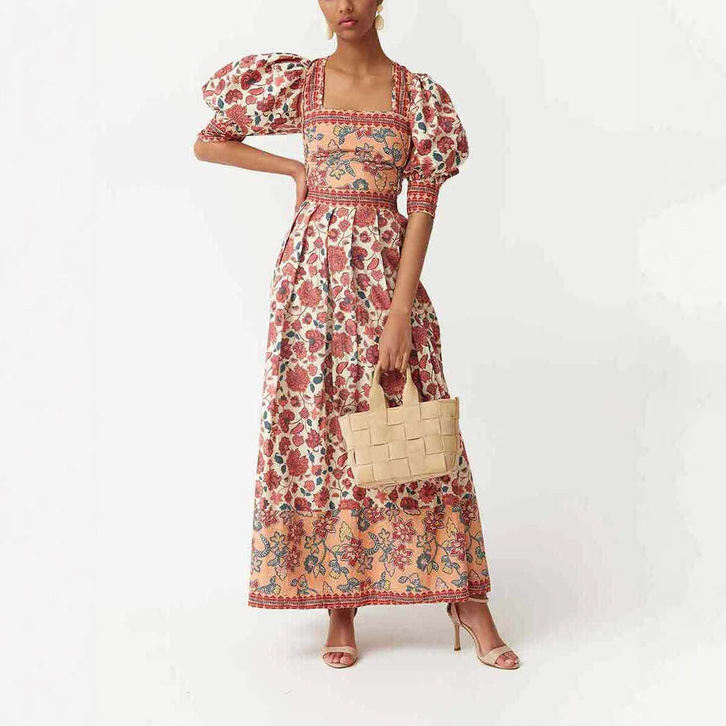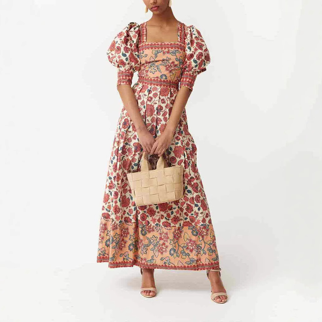 Casual Print Top Square Collar Skirt Two Piece Sets