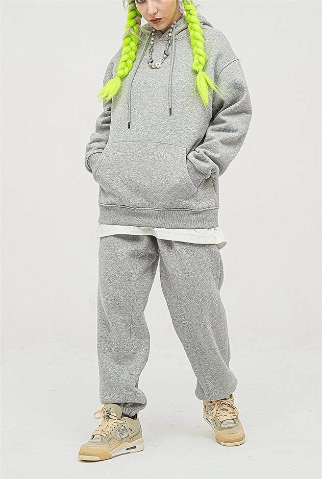 Clothing Autumn Winter Brand Fleece Padded Hooded Solid Color Hoodie sets