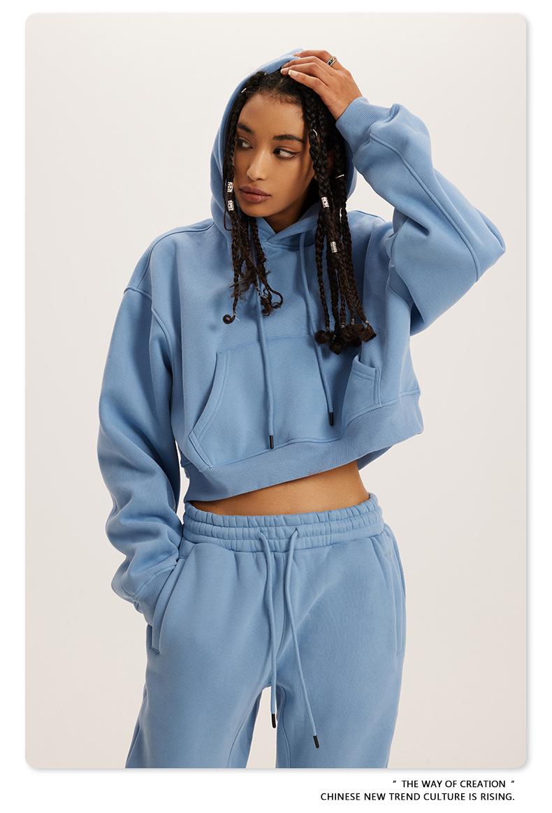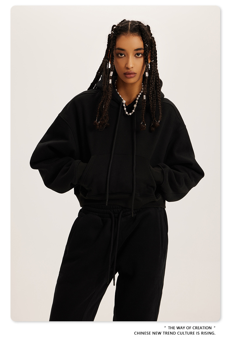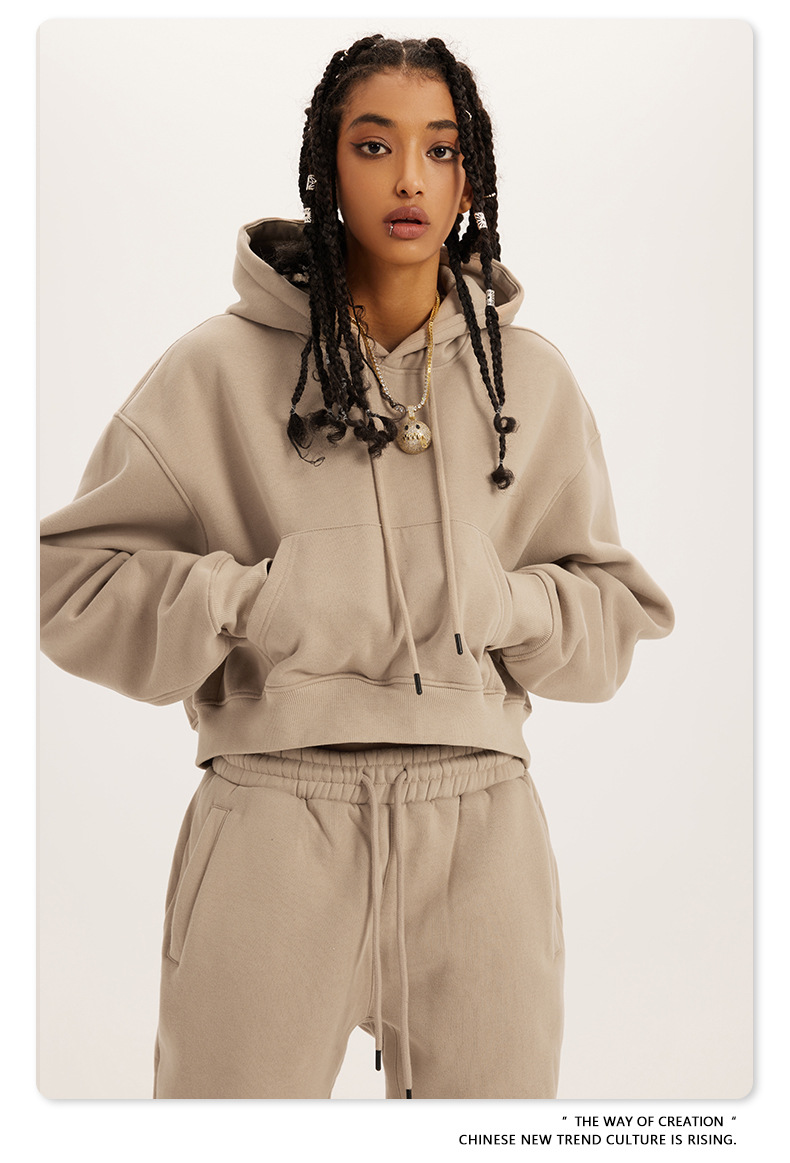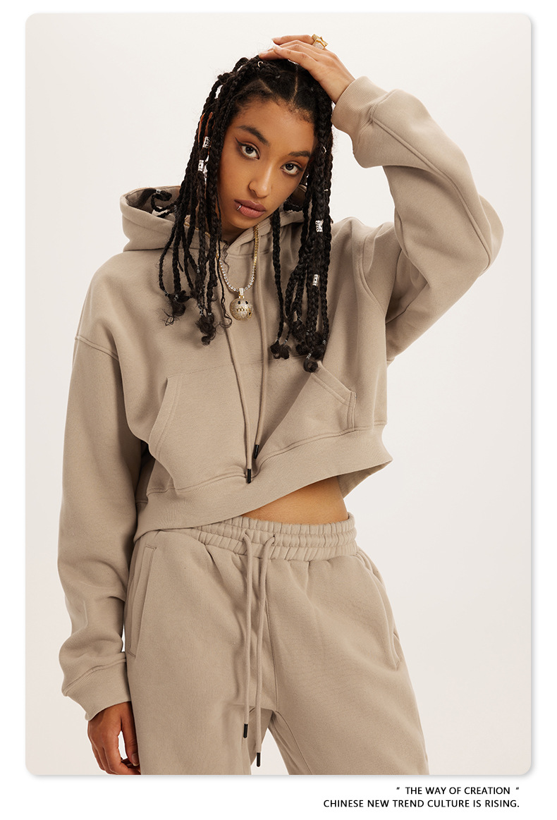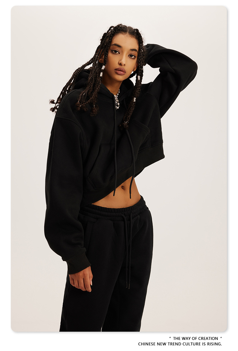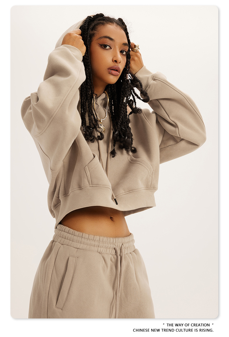 Clothing Autumn Winter Retro Hooded Pullover Women's Fleece-lined Thickened Sexy Short Women's Sweatshirt