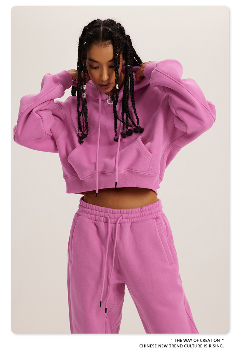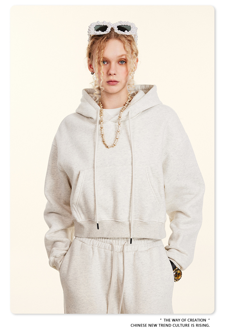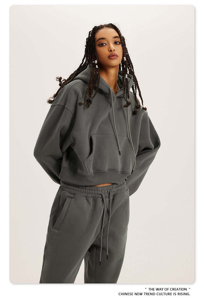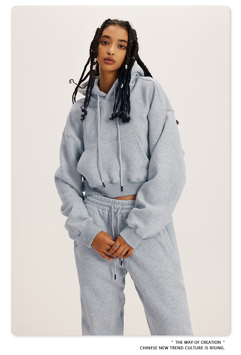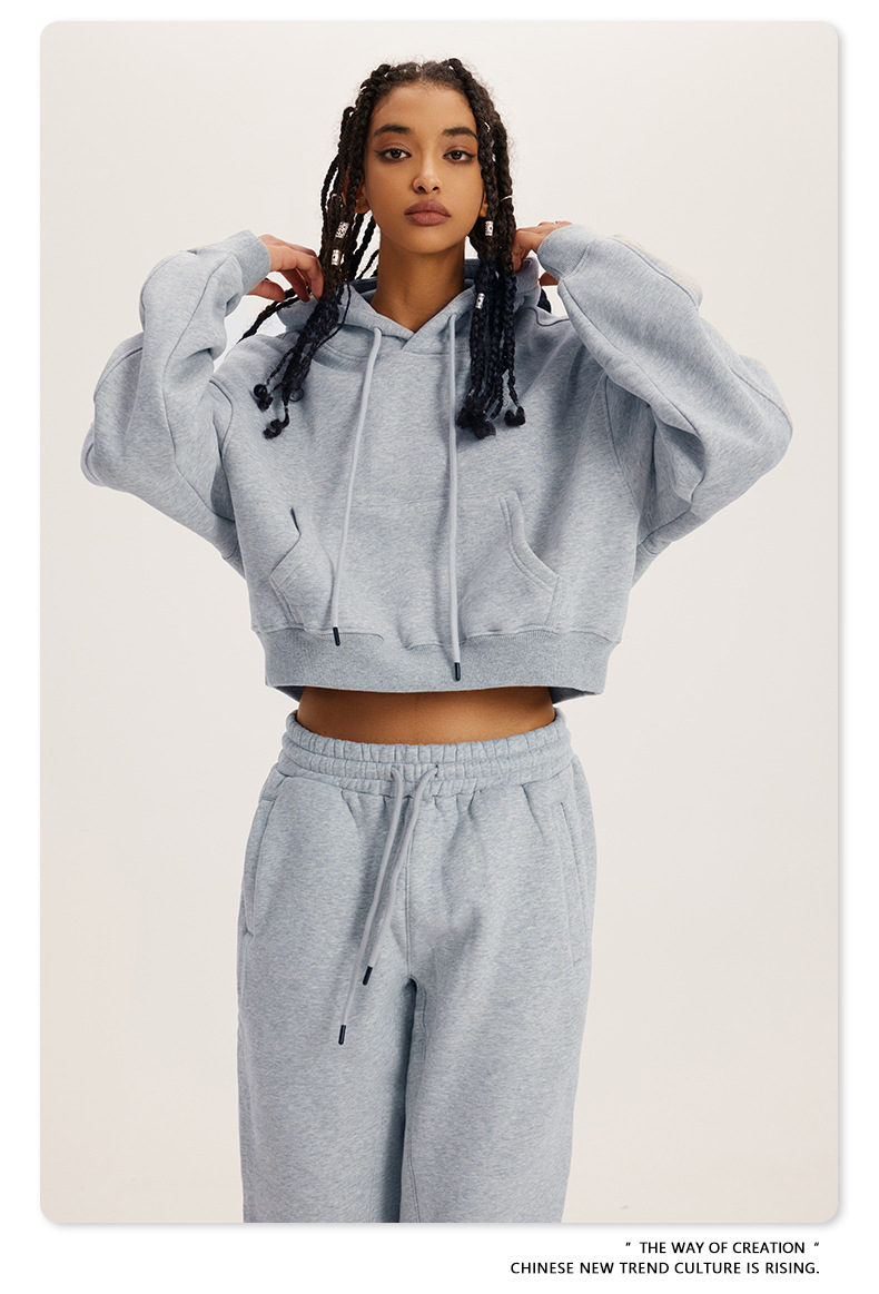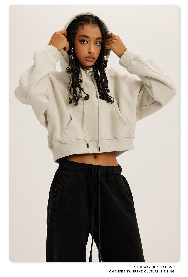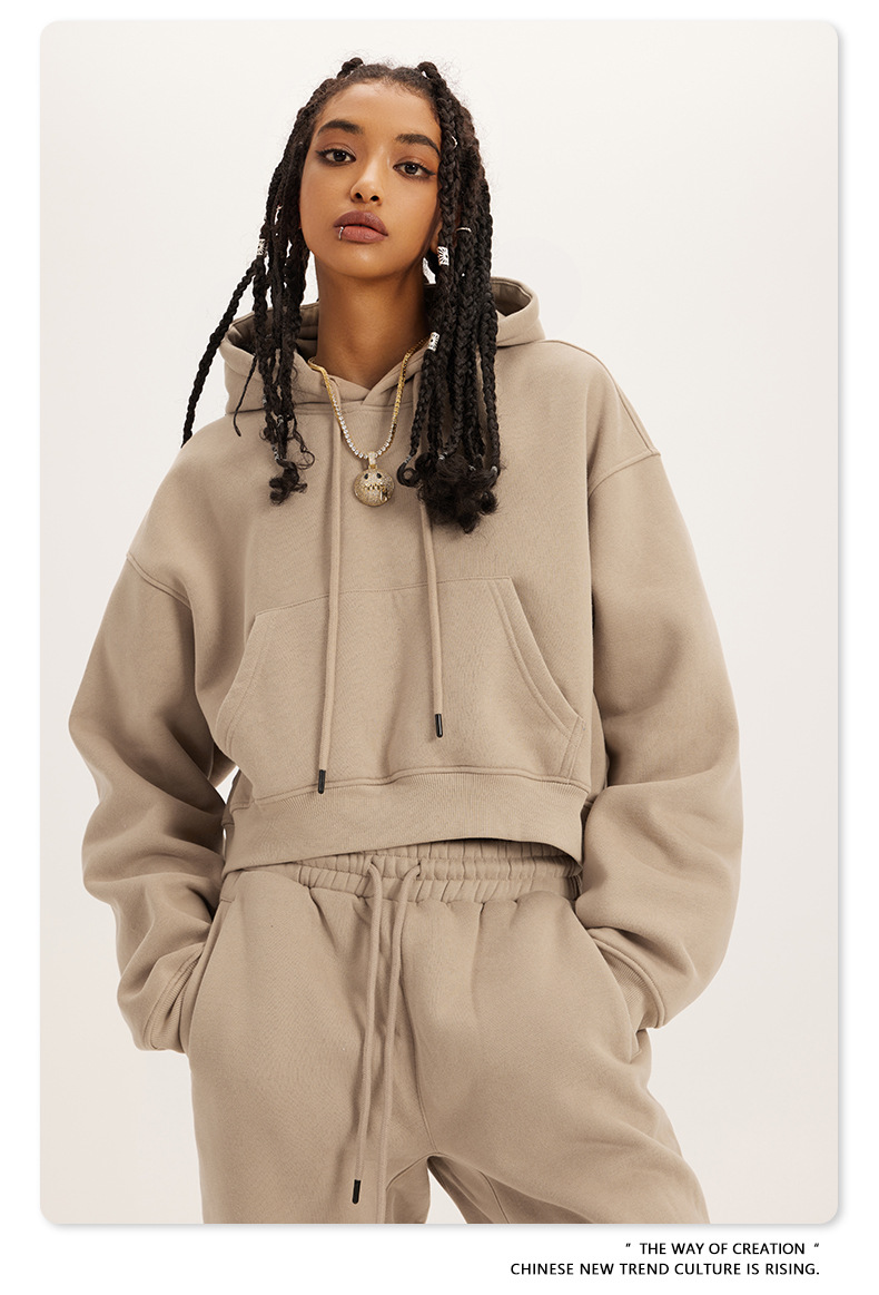 Clothing Autumn Winter Retro Hooded Pullover Women's Fleece-lined Thickened Sexy Short Women's Sweatshirt