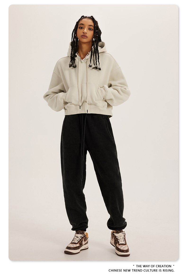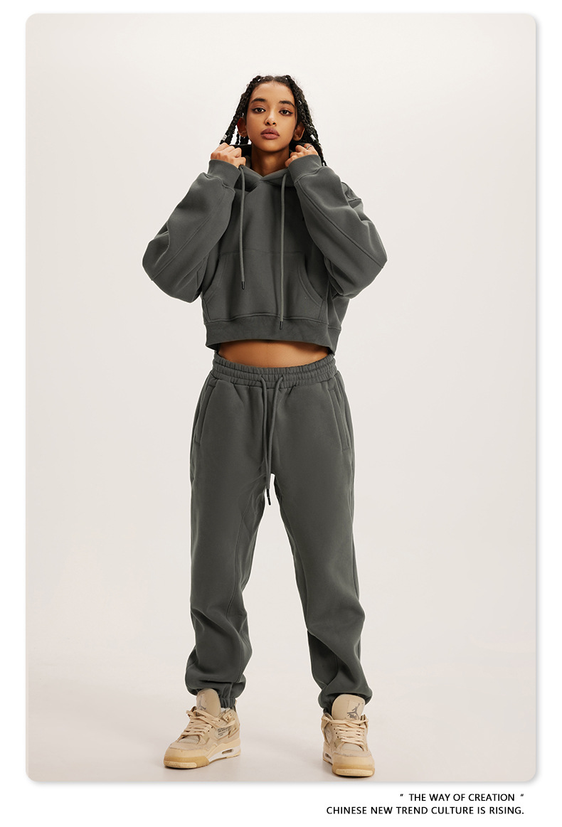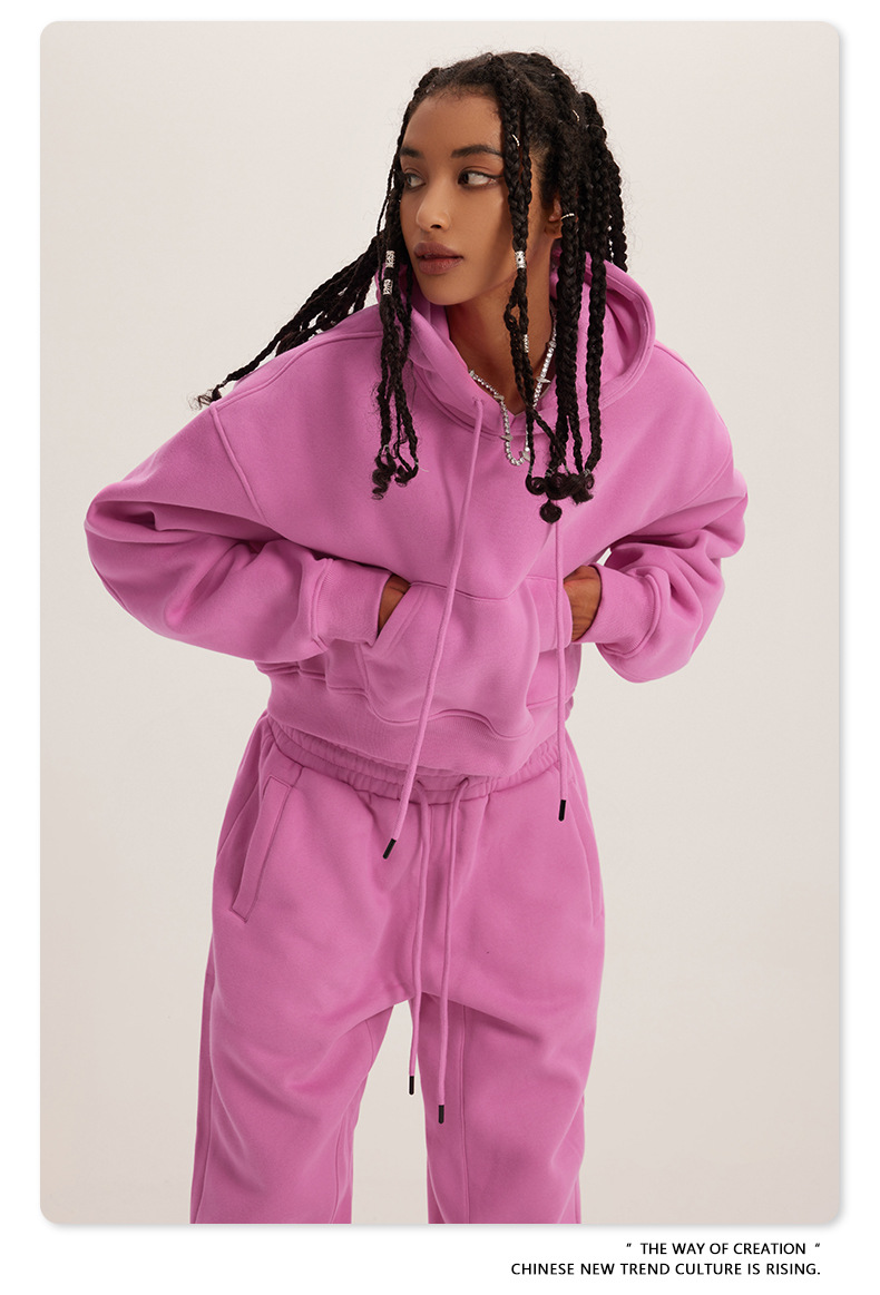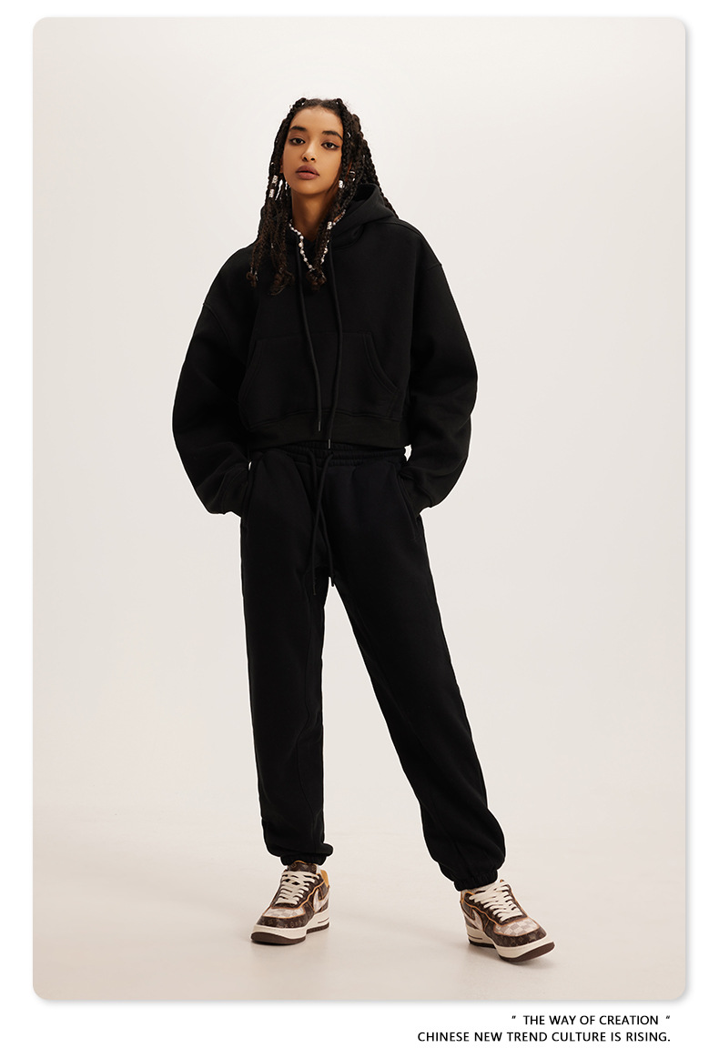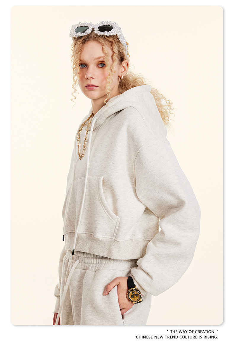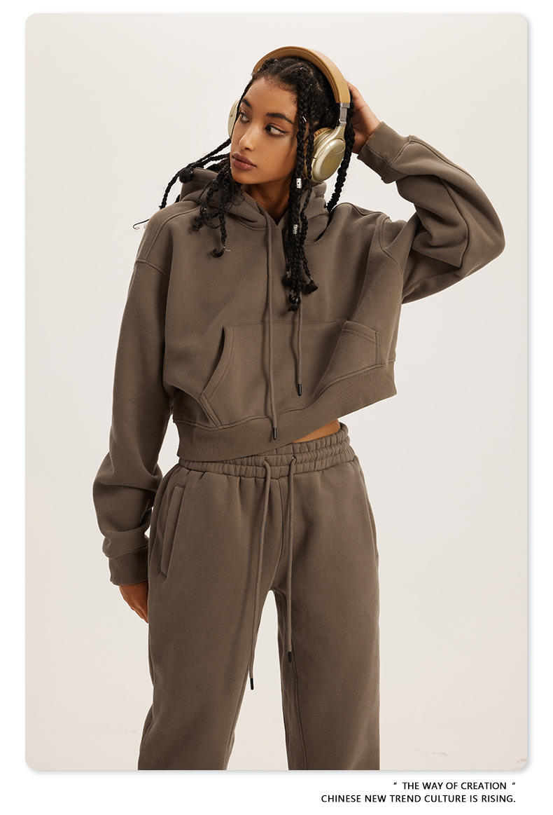 Clothing Autumn Winter Retro Hooded Pullover Women's Fleece-lined Thickened Sexy Short Women's Sweatshirt