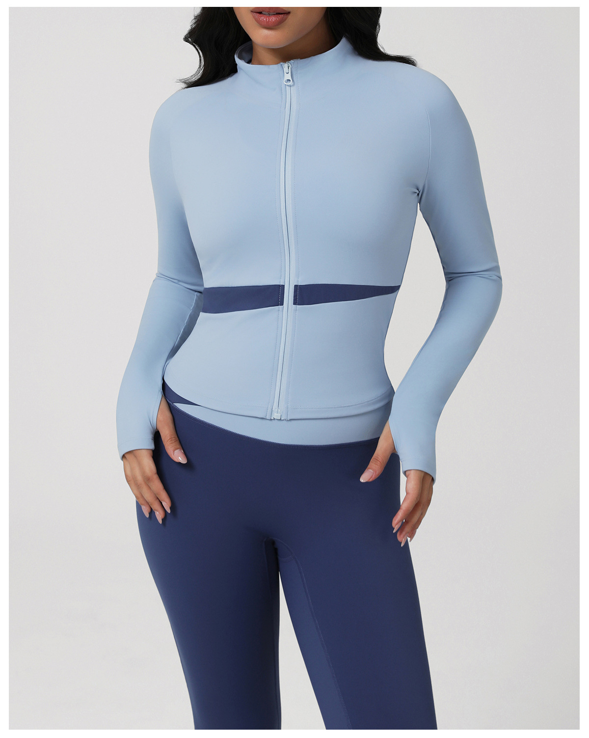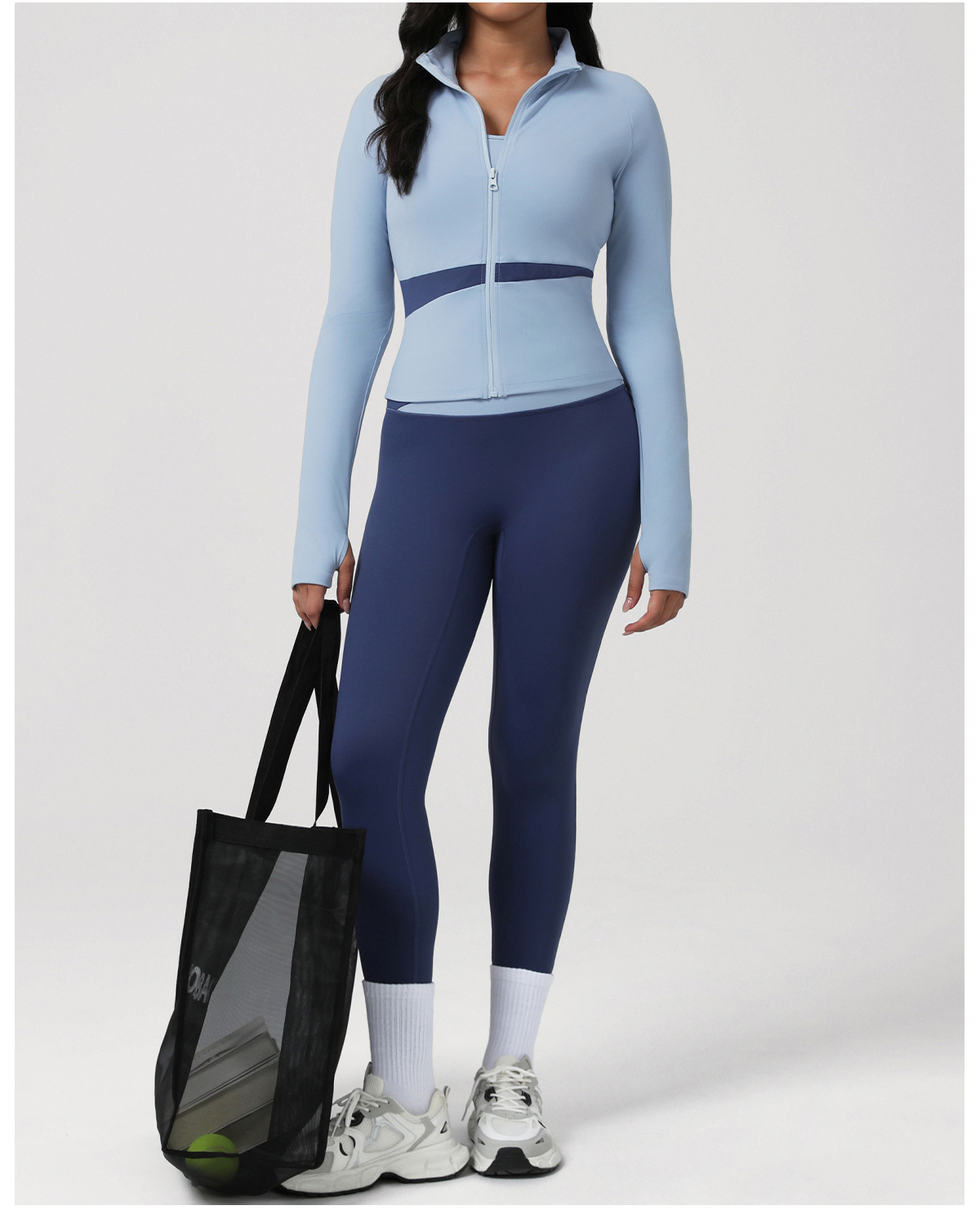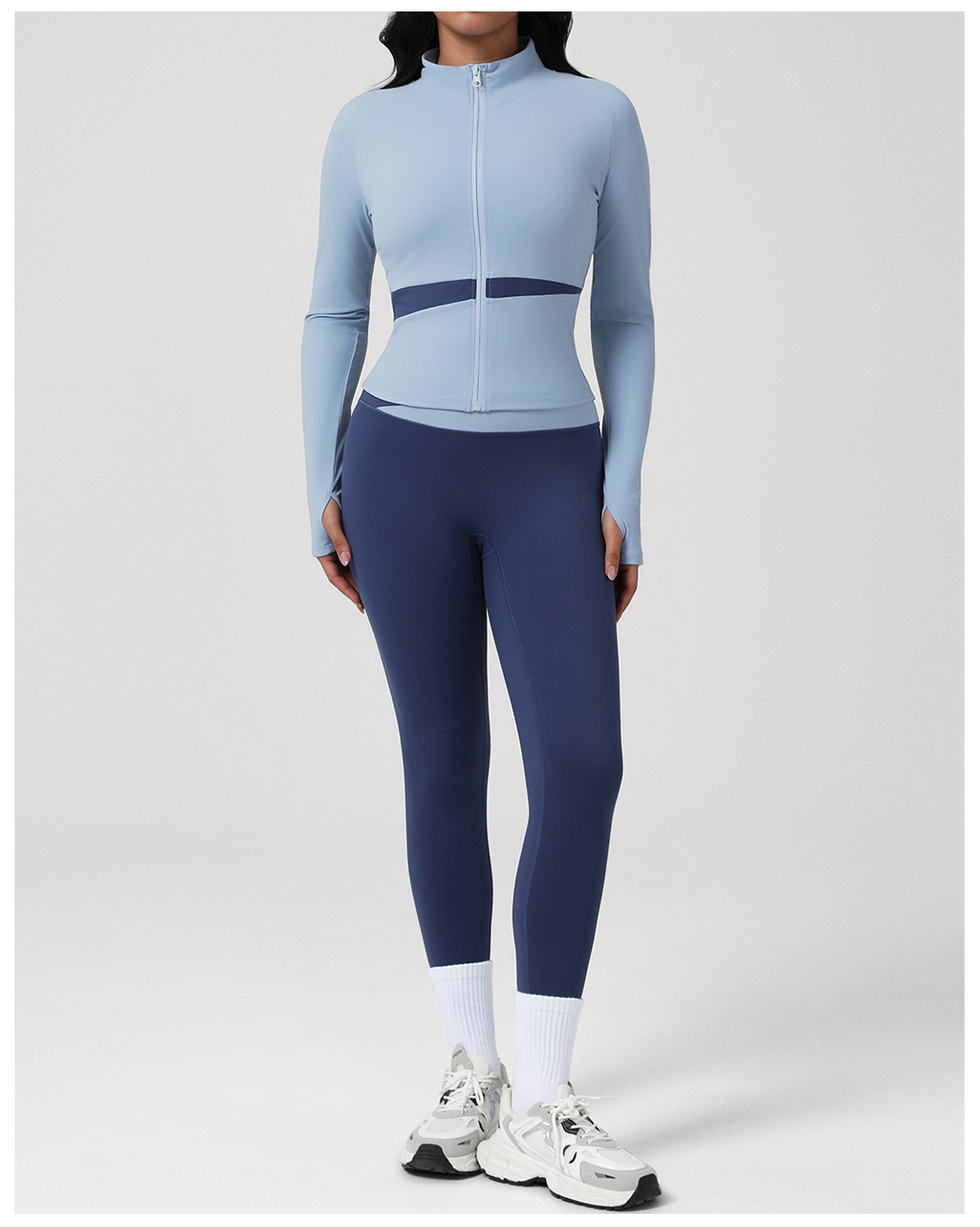 Contrast Color Yoga Women Long Sleeved Sports Bra Top Hip Lifting Tights Morning Running Step Fitness Set