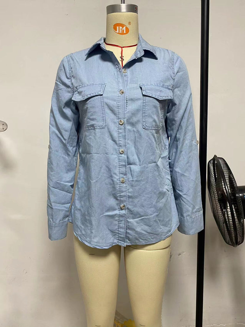 Denim Shirt Autumn Casual Collared Single Breasted Women Long Sleeved Denim