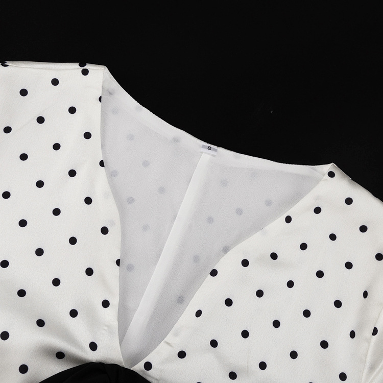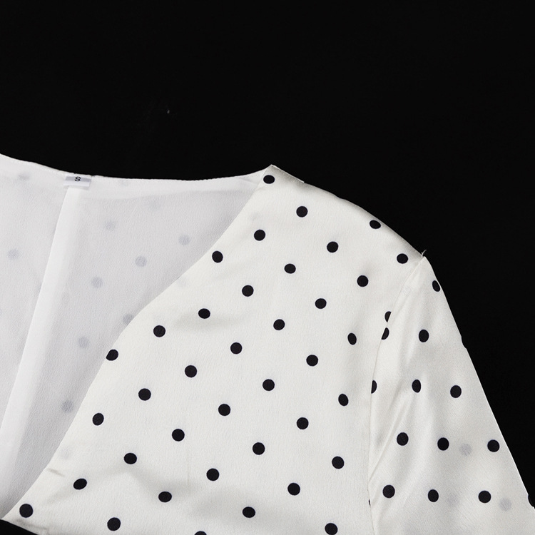 Design Bow V neck Long Sleeve Elegant Dress Women Digital Printing Polka Dot Maxi Dress