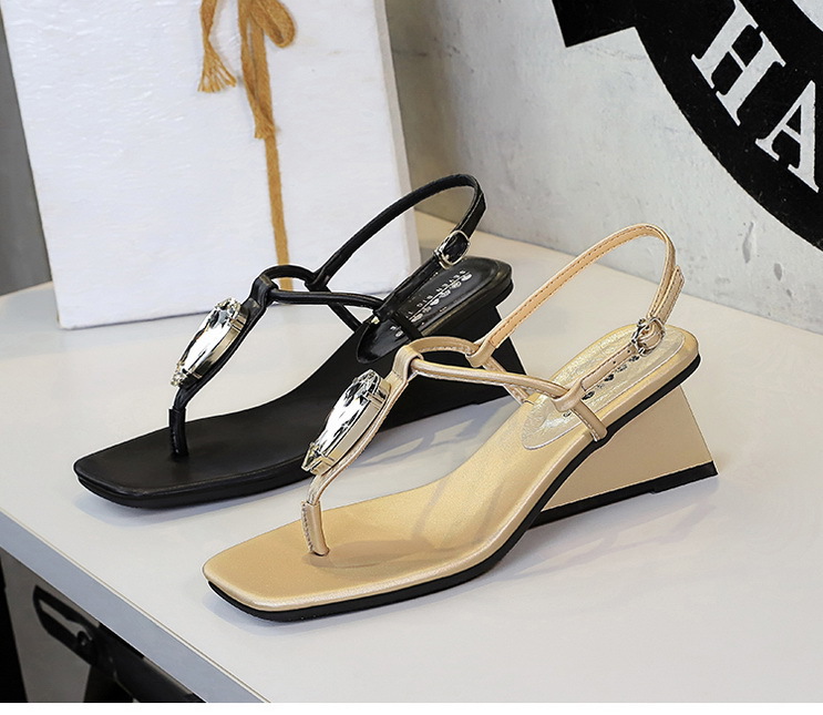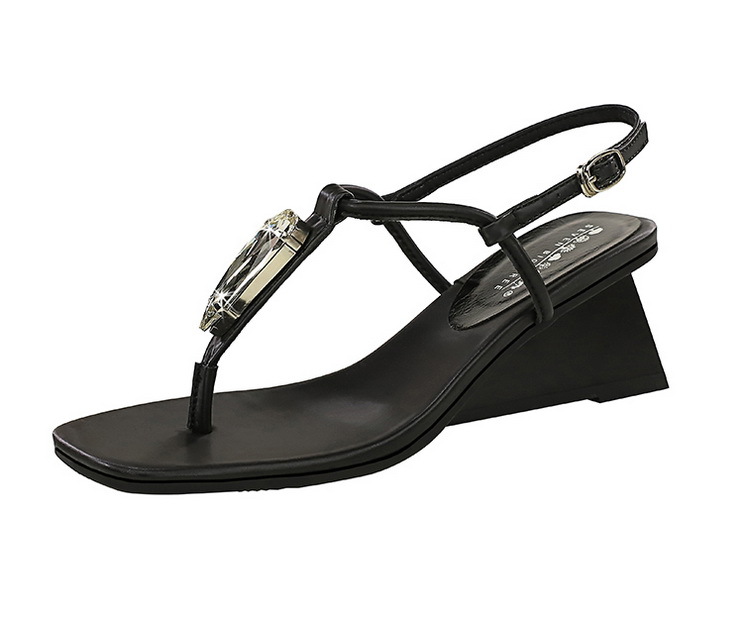 Design High Face Wedge Sandals with Flip Flops Women Rhinestone Thin Strap Flip Flops Women High Heels