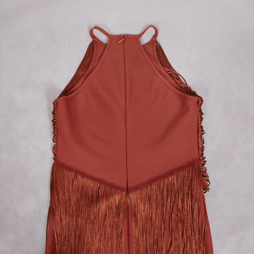Design Tassel Sleeveless Waist Tight Bandage One Piece Dress Ladies Party Stage Performance Dress Women Clothing