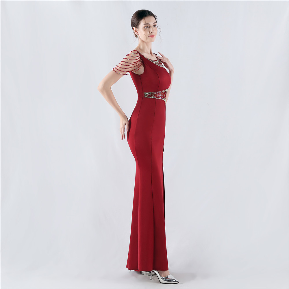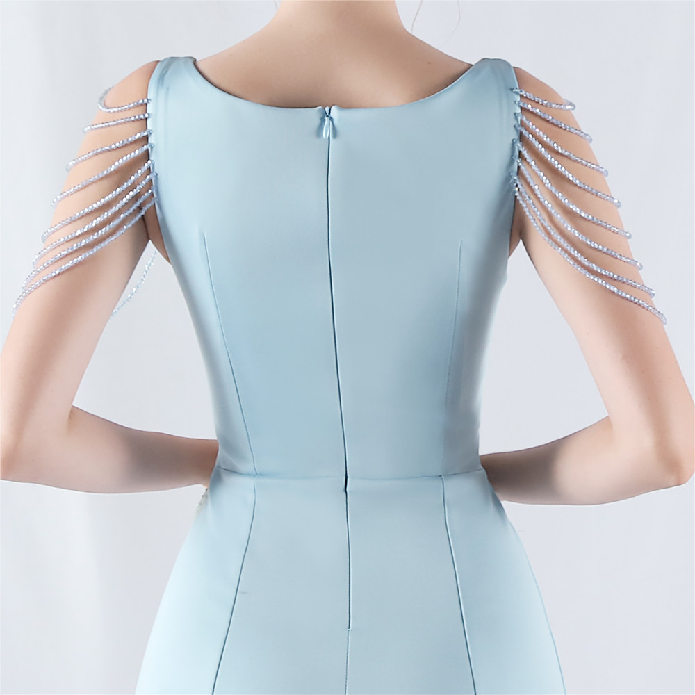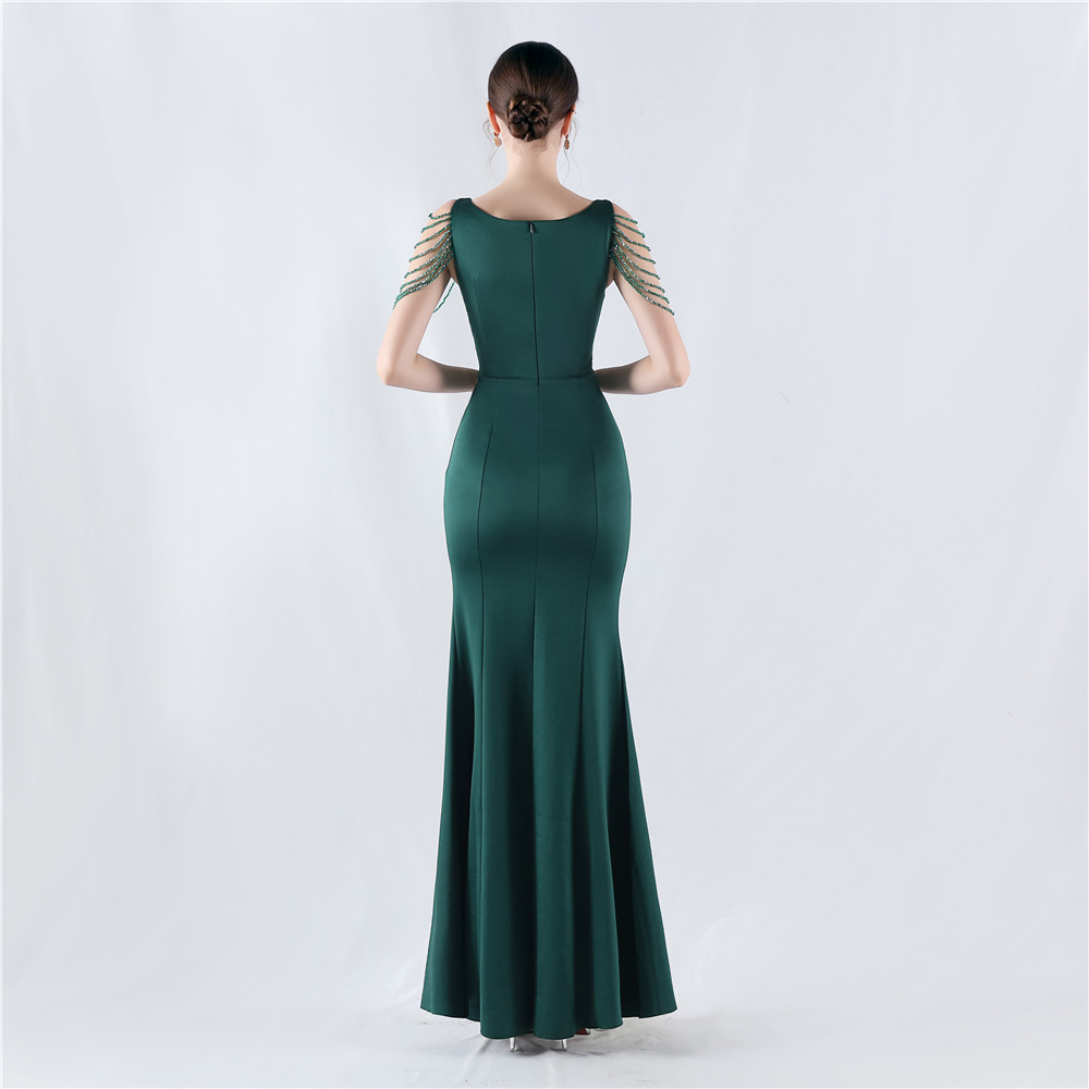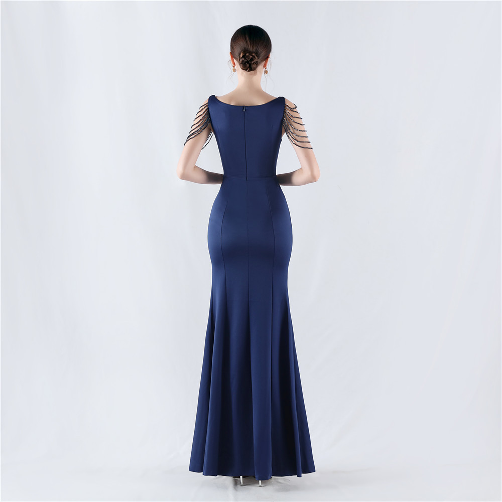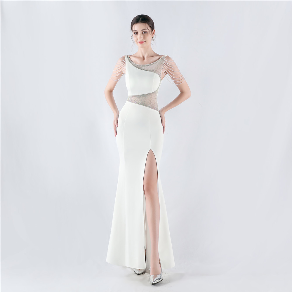 Dress Heavy Embroidery Drilling Give Sheer Mesh High Fork Satin Evening Dress Annual Meeting Wedding