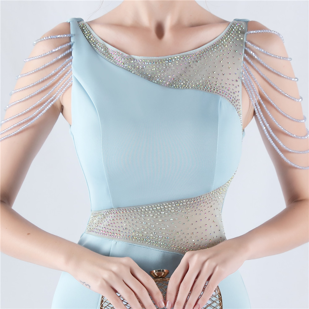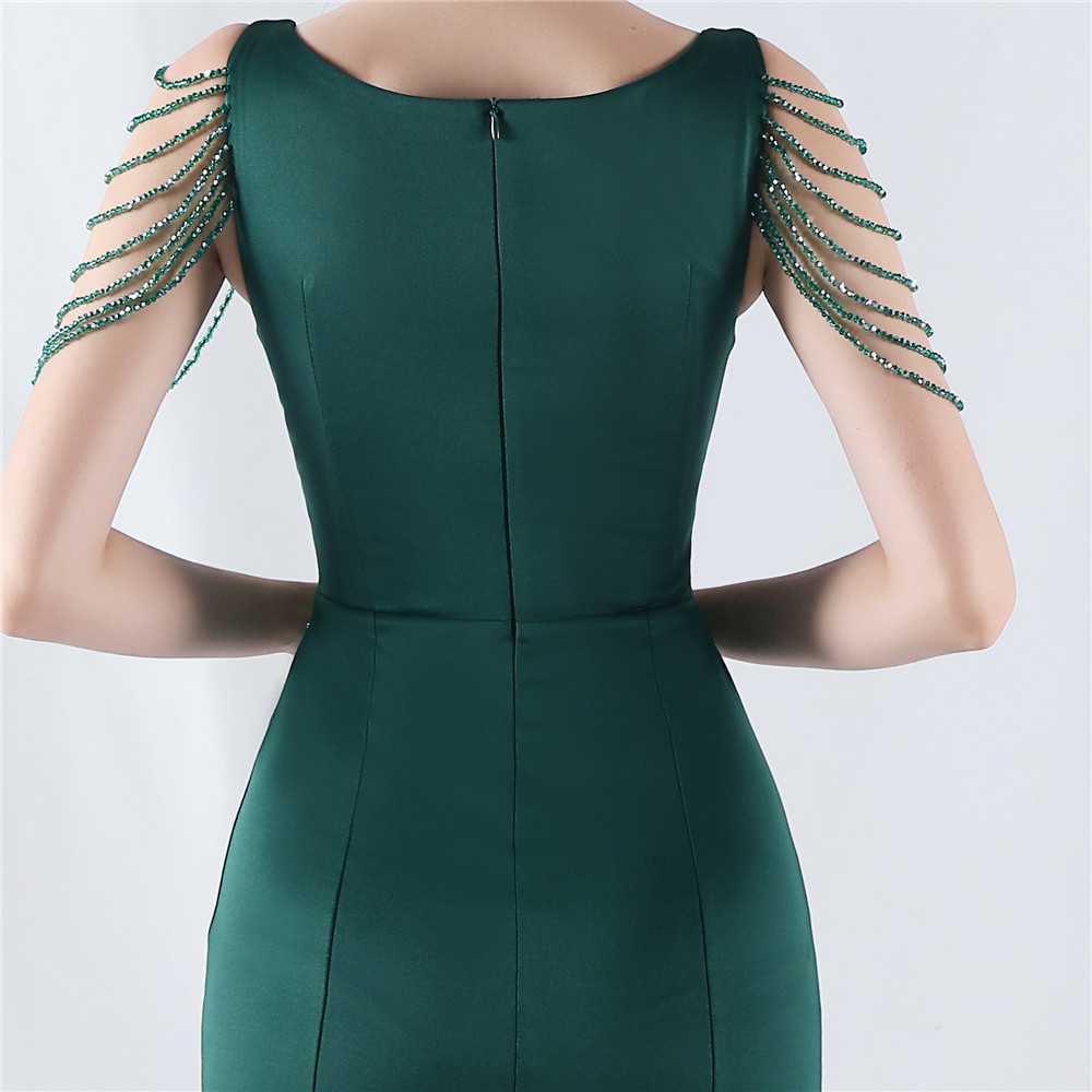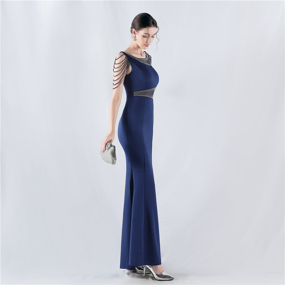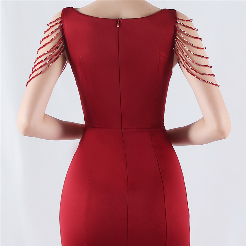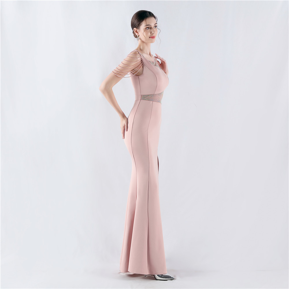 Dress Heavy Embroidery Drilling Give Sheer Mesh High Fork Satin Evening Dress Annual Meeting Wedding