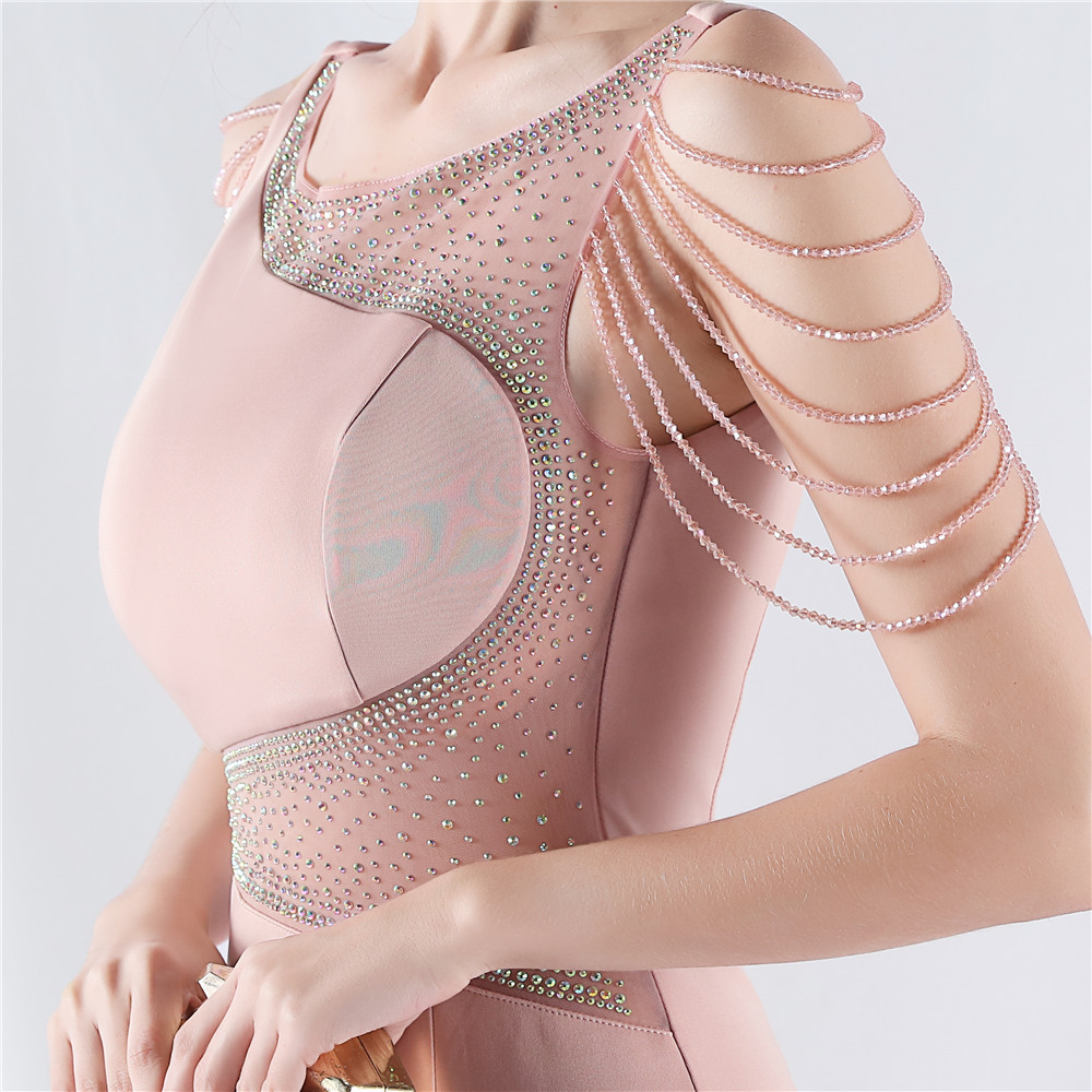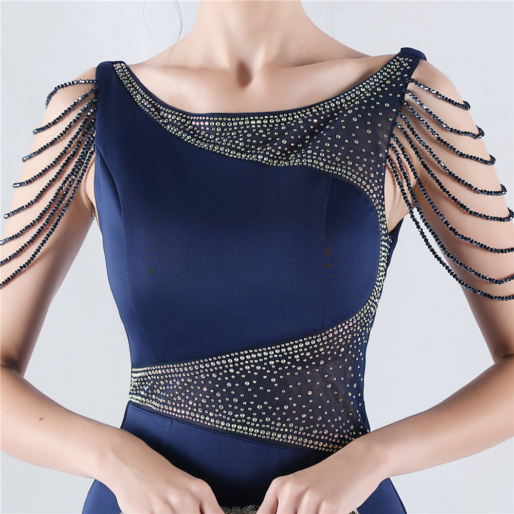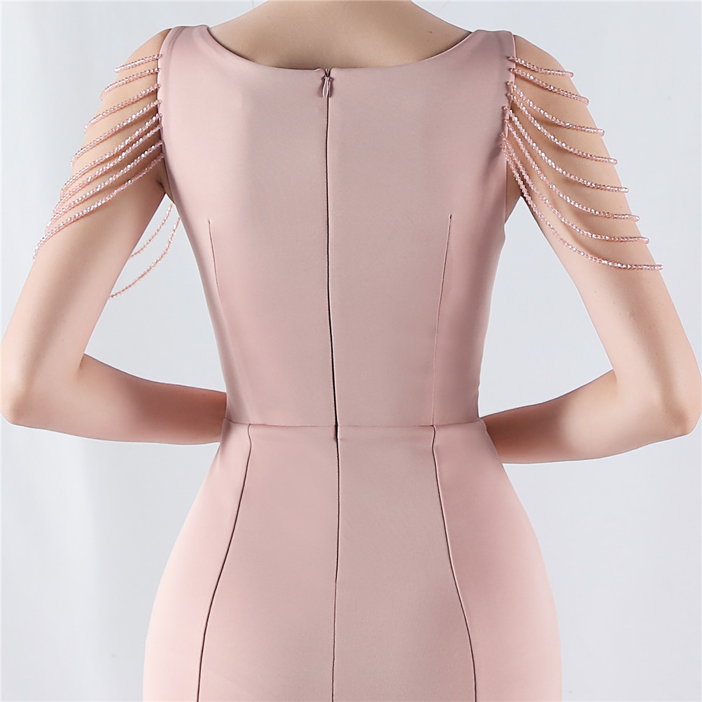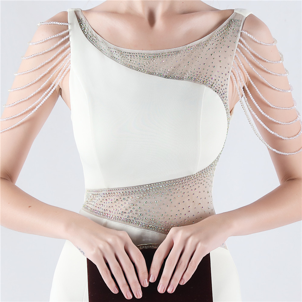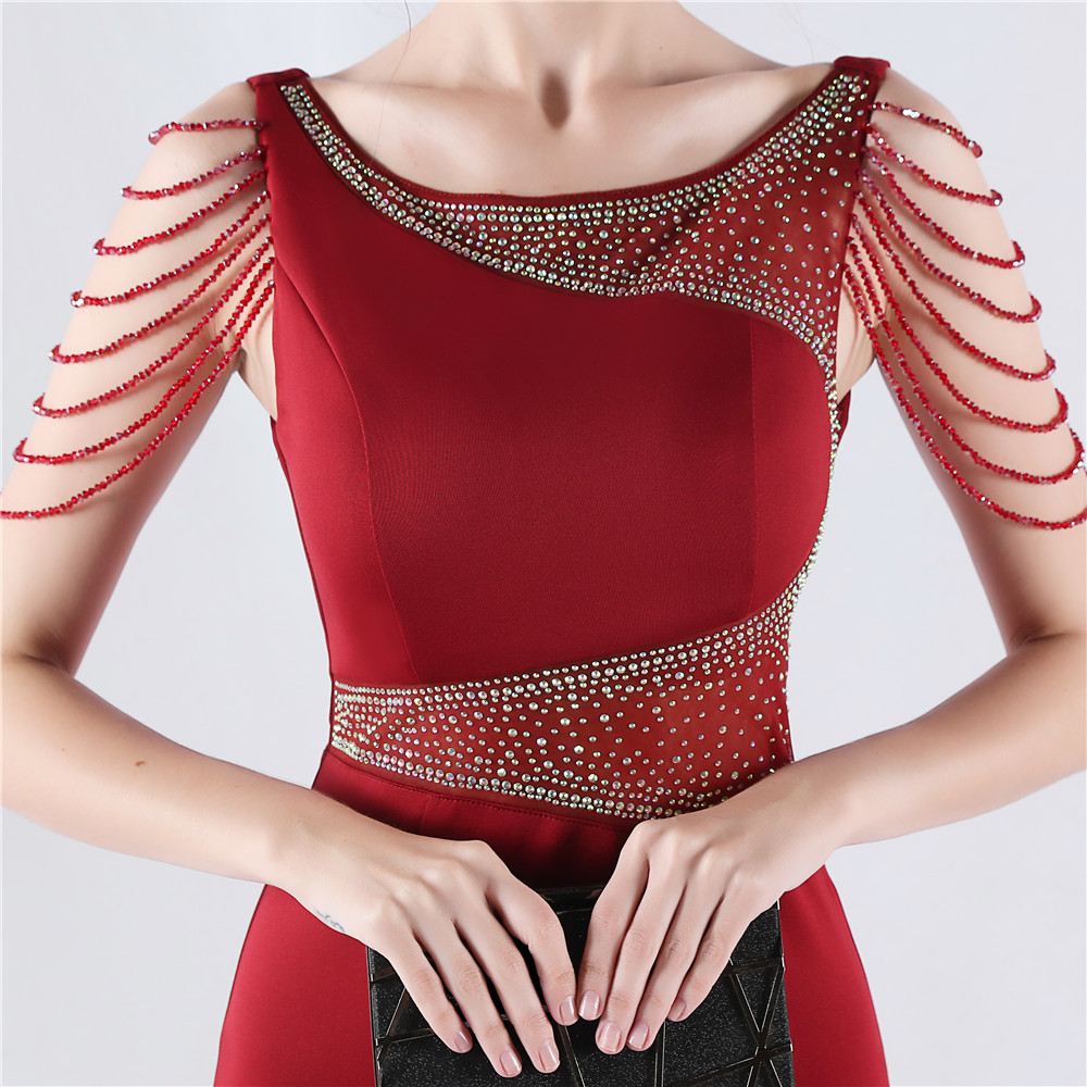 Dress Heavy Embroidery Drilling Give Sheer Mesh High Fork Satin Evening Dress Annual Meeting Wedding