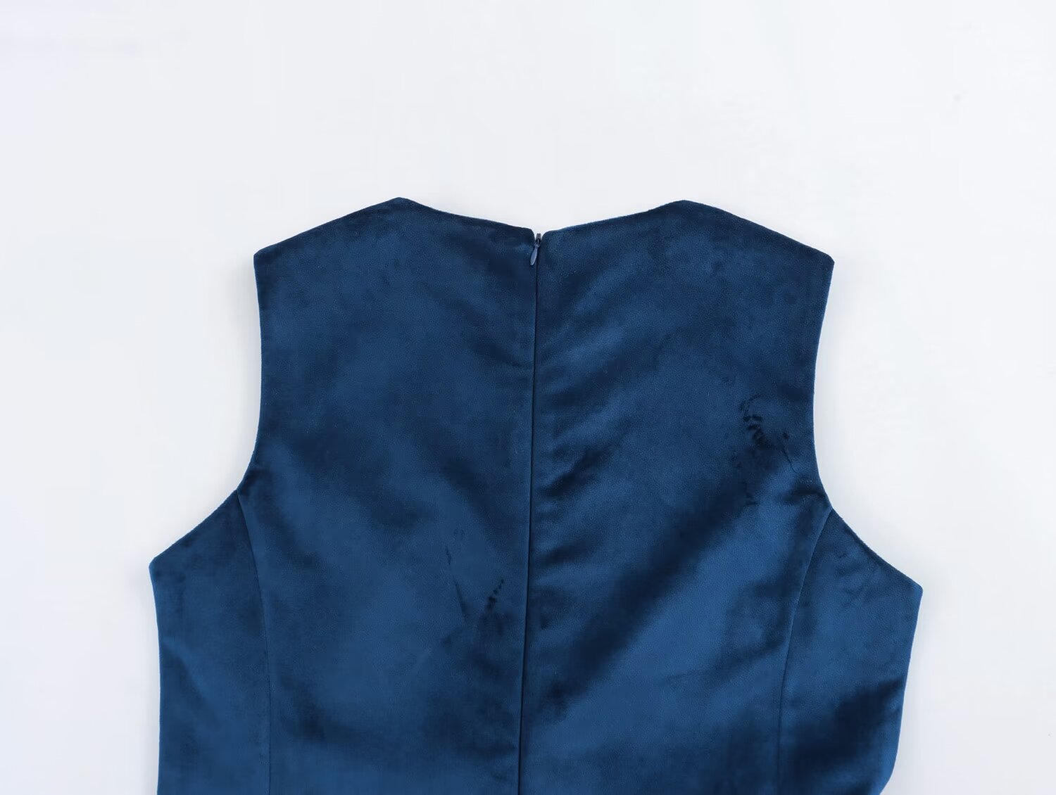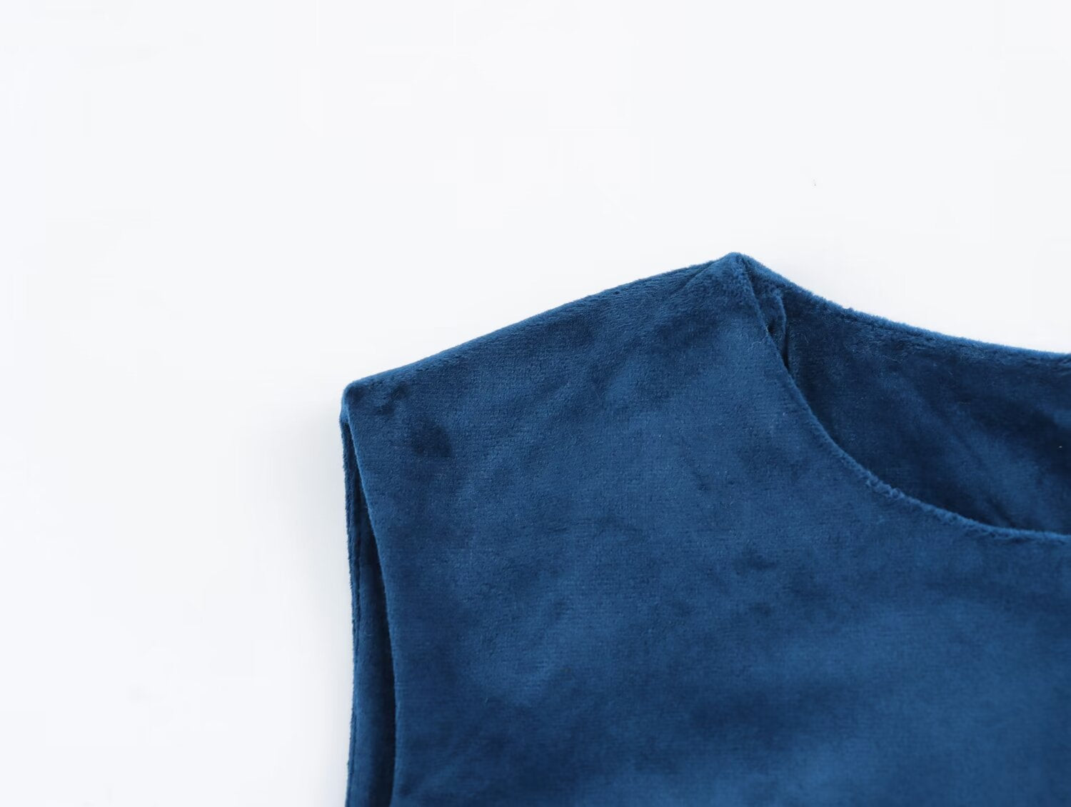 Early Spring Women Clothing Round Neck Sleeveless Elegant Velvet Dress