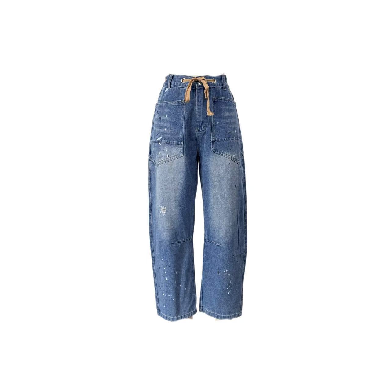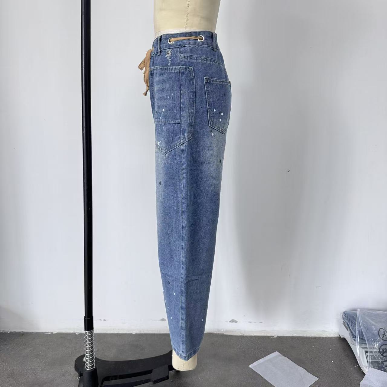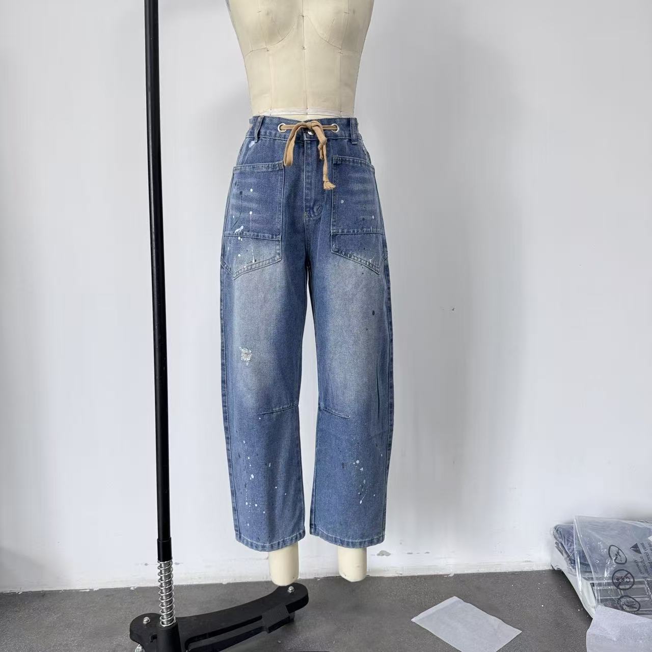 Eight Colors Retro Washed Stitching Patchwork Splash Ink Straight Drawstring