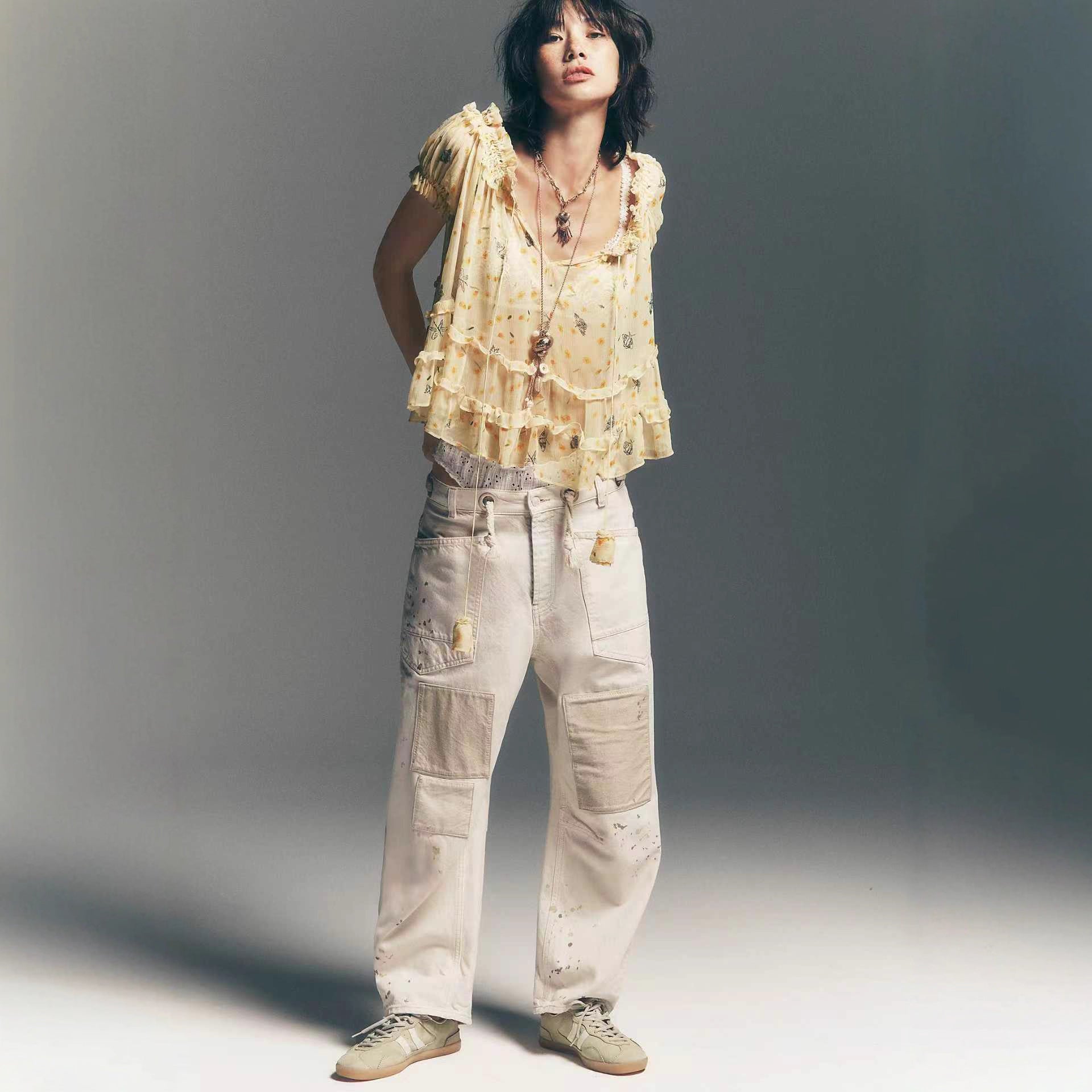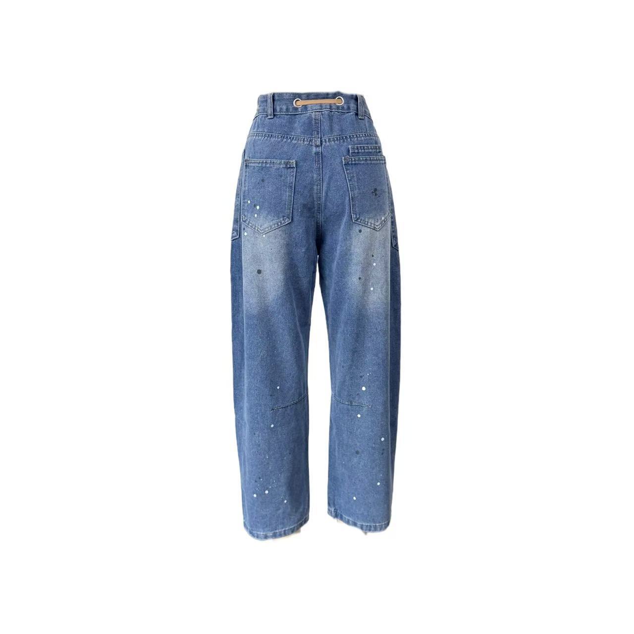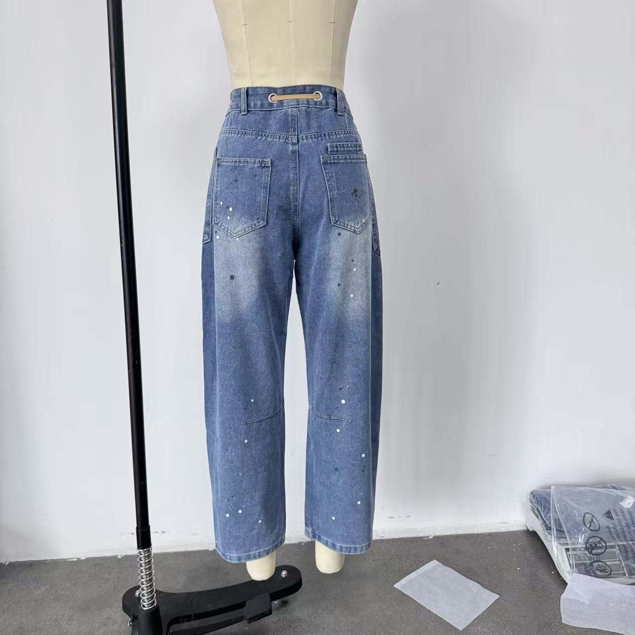 Eight Colors Retro Washed Stitching Patchwork Splash Ink Straight Drawstring